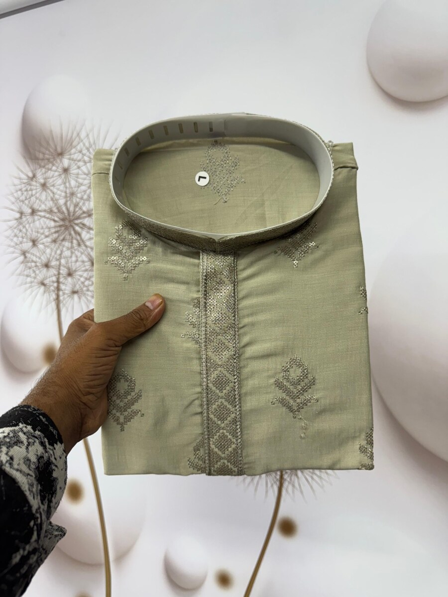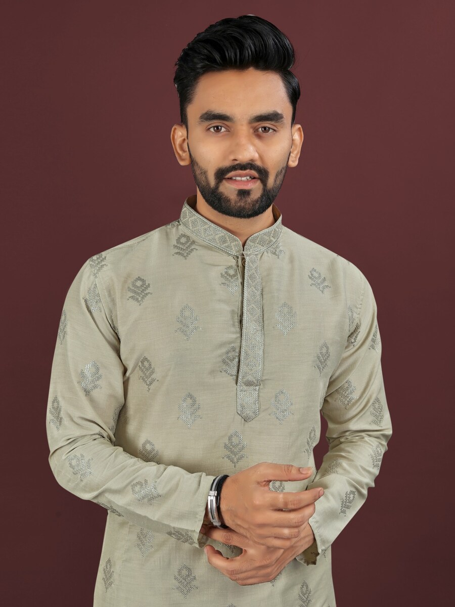 DESIGNER VISCOSE SILK EMBROIDERY SEQUENCE WORK MEN’S KURTA PAYJAMA PISTA