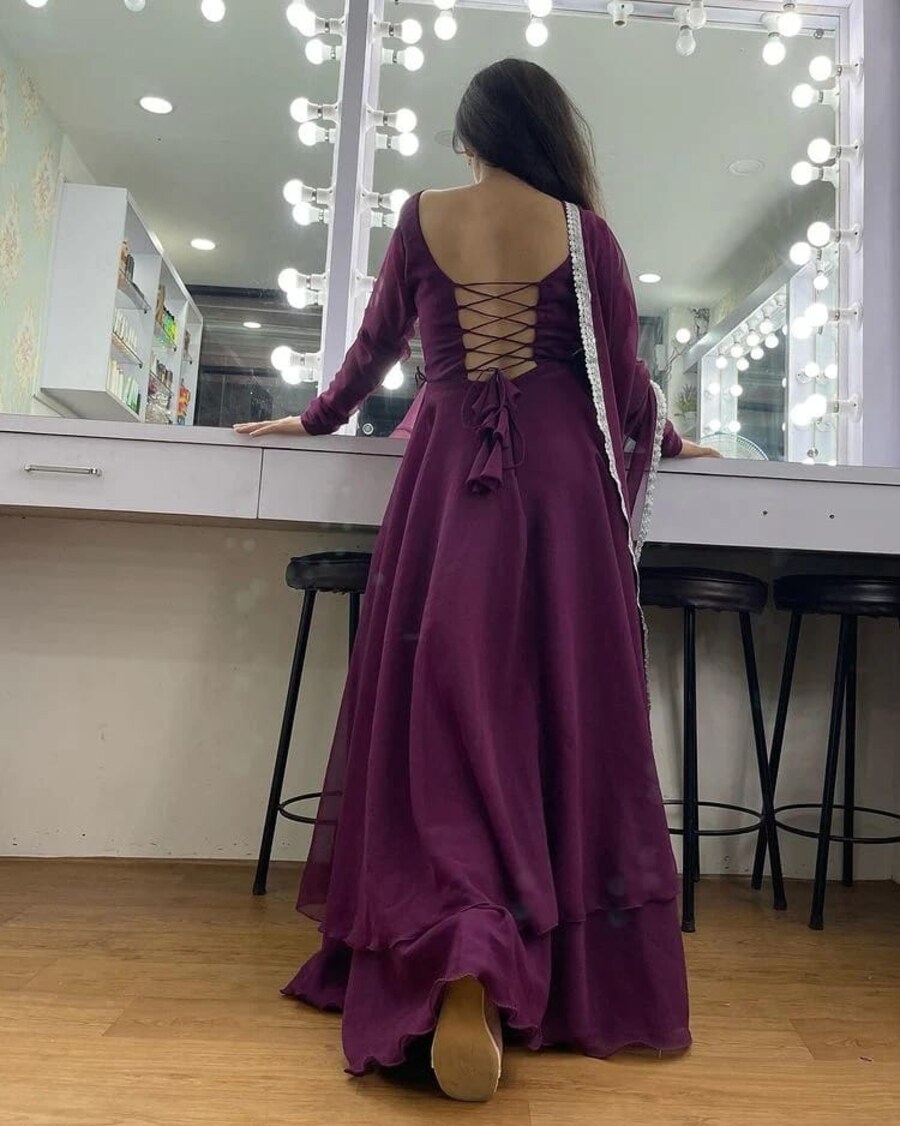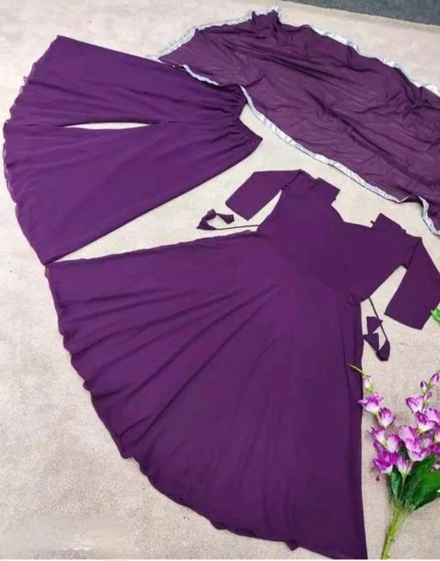 FABULOUS GEORGETTE PLAIN TOP PALAZZO WITH DUPATTA PURPLE