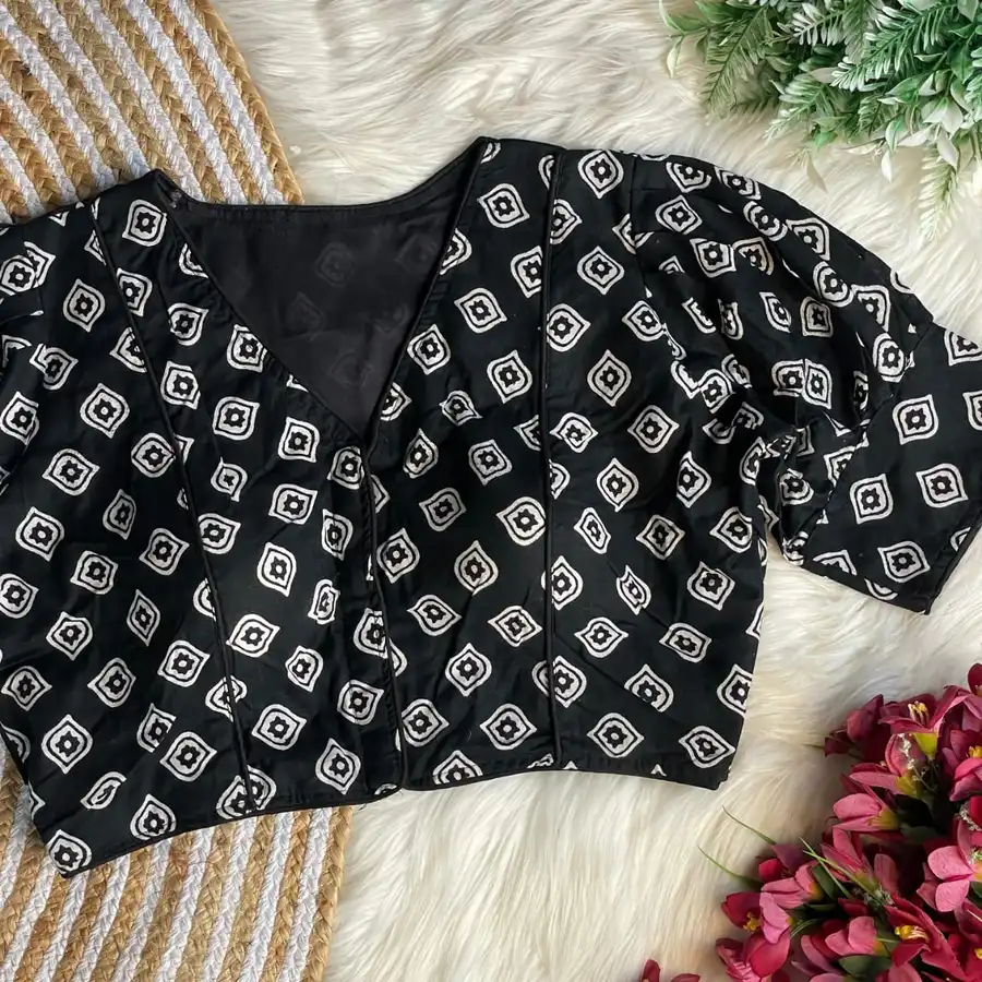 FANCY AJRAKH COTTON PRINT WORK STITCHED BLOUSE BLACK