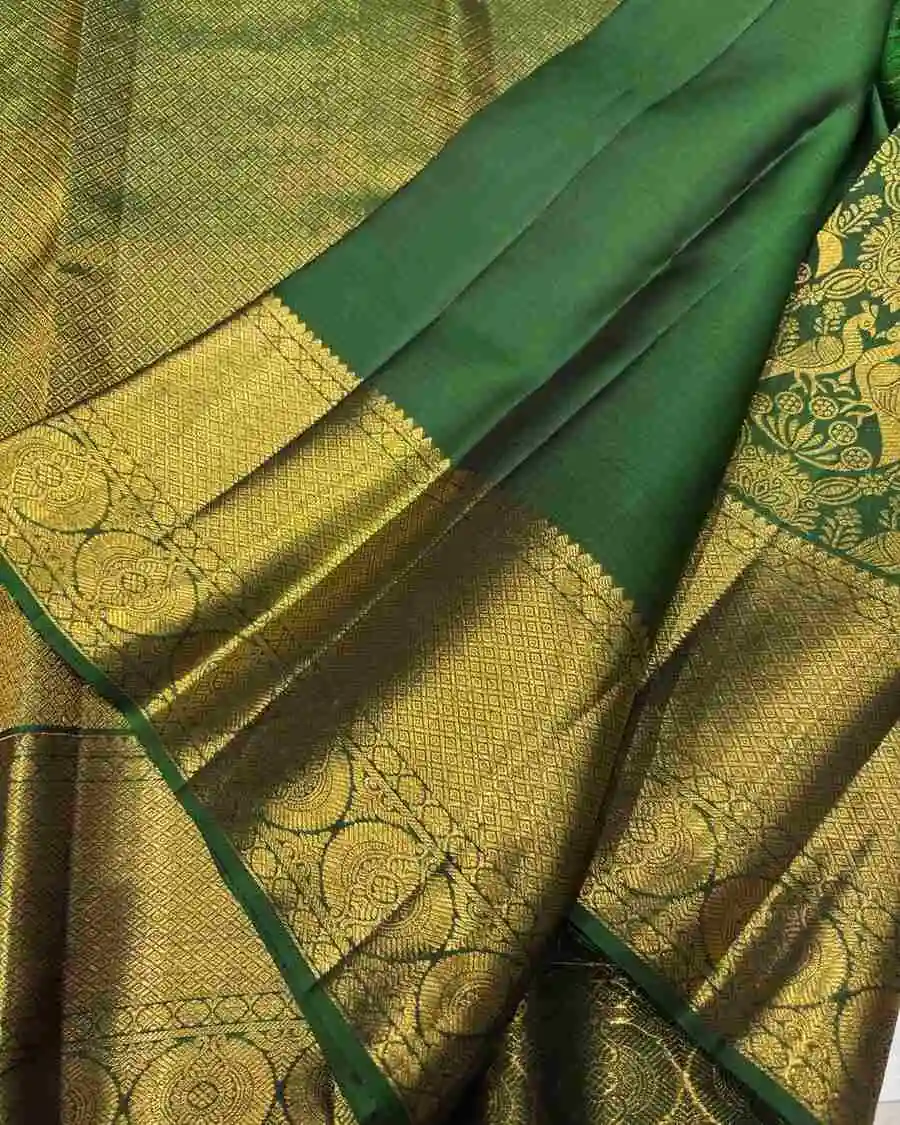 FANCY BANARASI SILK WEAVING WORK SAREE WITH UNSTITCHED BLOUSE GREEN