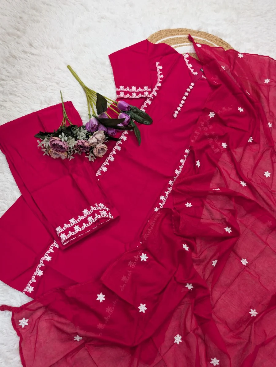 FANCY CHANDERI SEQUENCE EMBROIDERY WORK TOP BOTTOM WITH DUPATTA PINK