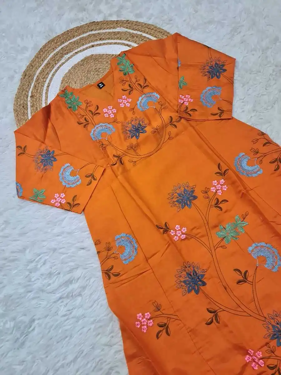 FANCY CHANDERI SILK EMBROIDERY WORK TOP BOTTOM WITH DUPATTA ORANGE