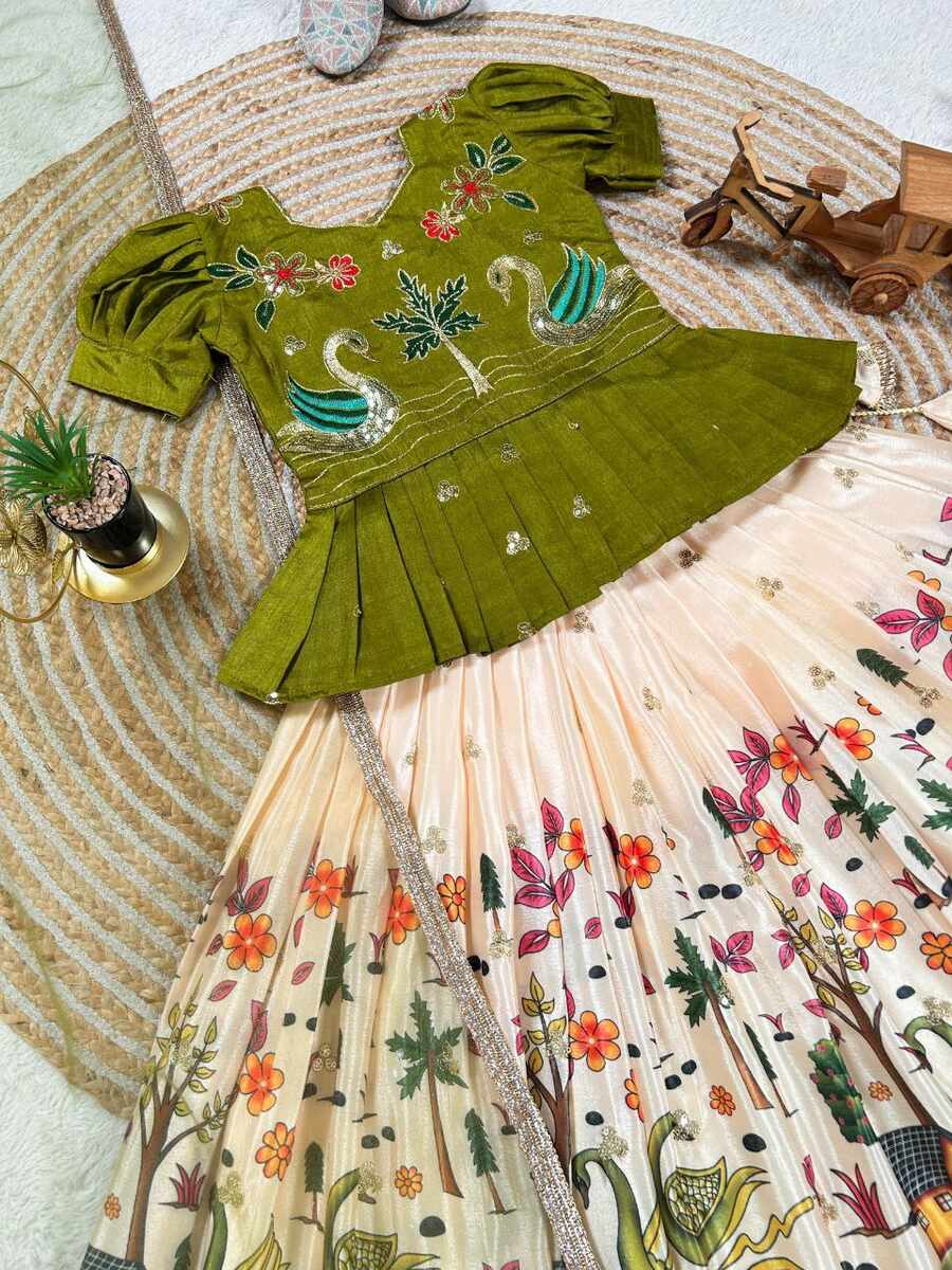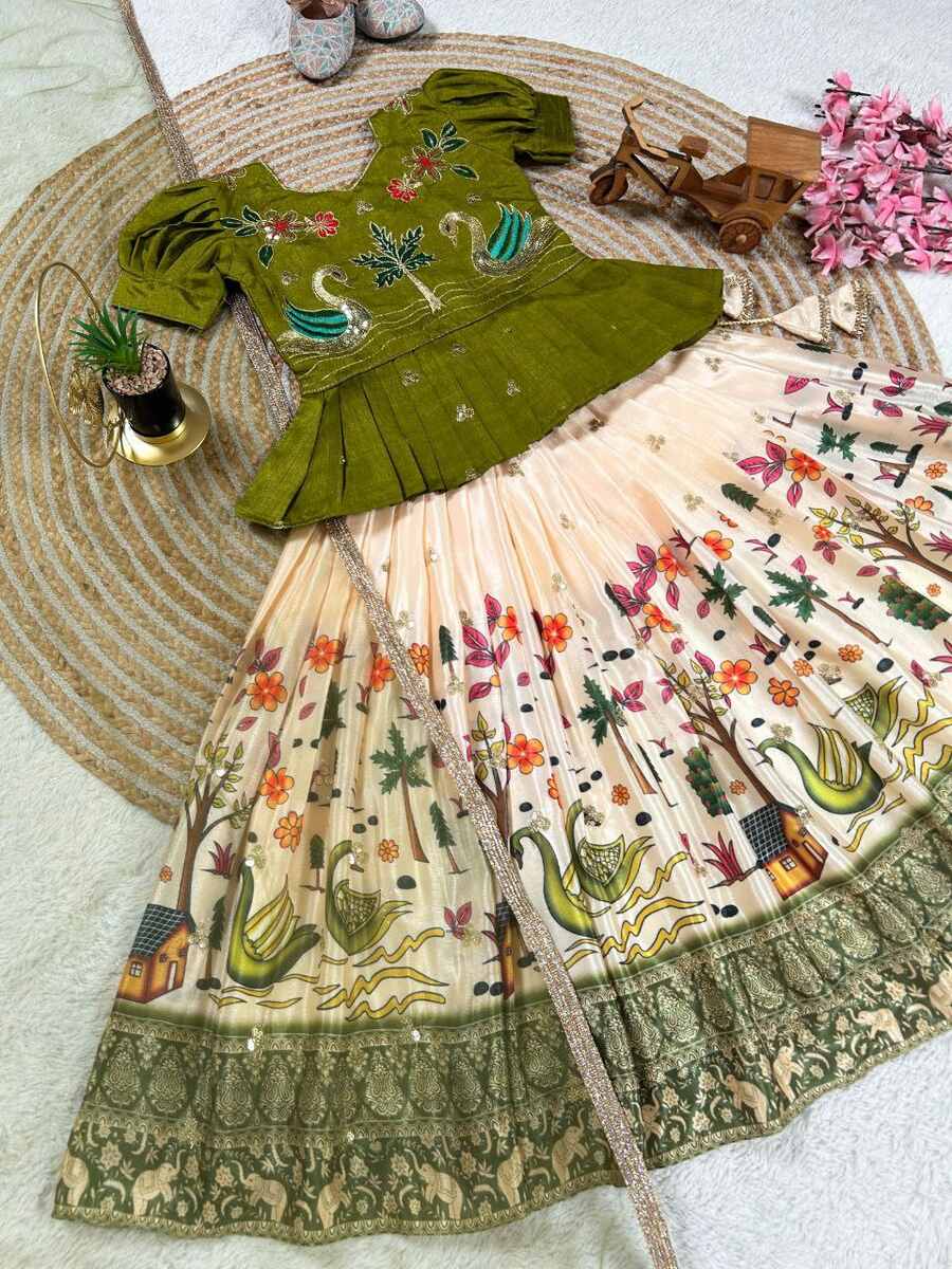 FANCY CHINON EMBROIDERY SEQUENCE WORK KID’S TOP LEHENGA WITH DUPATTA GREEN