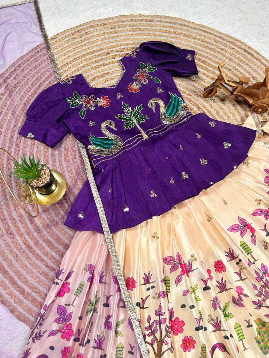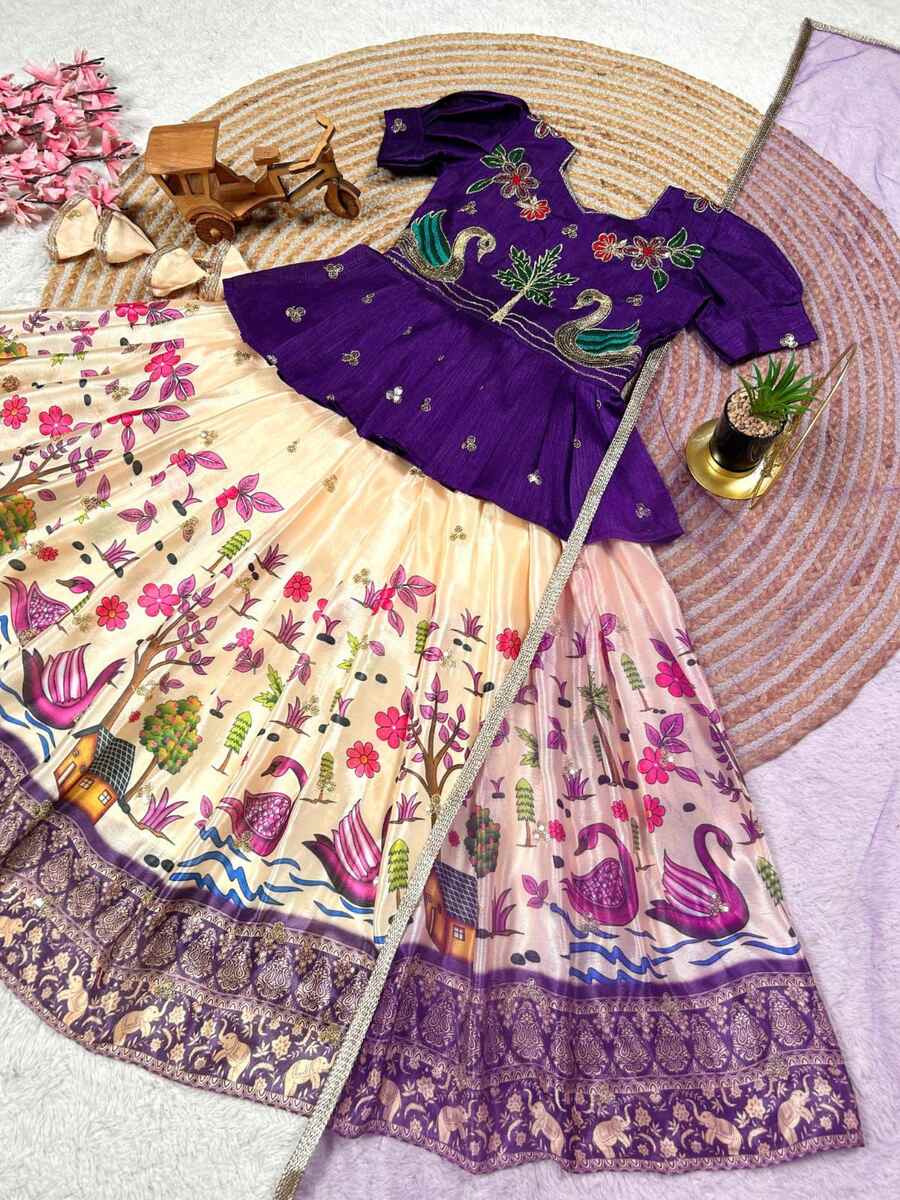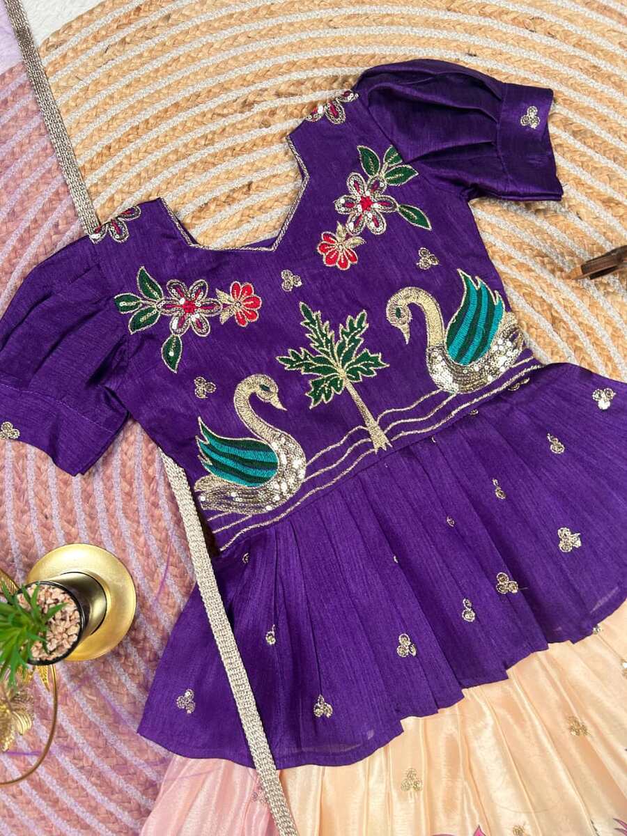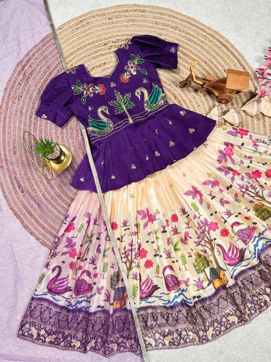 FANCY CHINON EMBROIDERY SEQUENCE WORK KID’S TOP LEHENGA WITH DUPATTA PURPLE