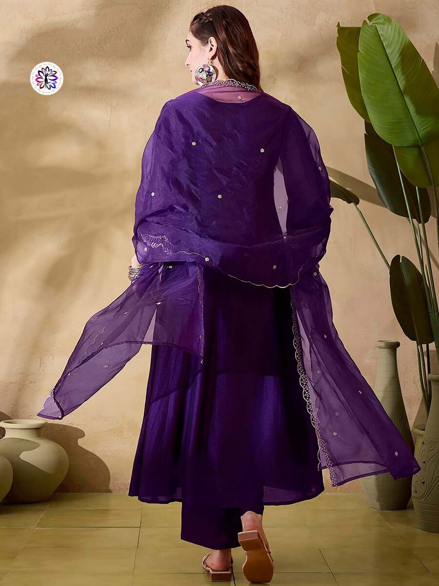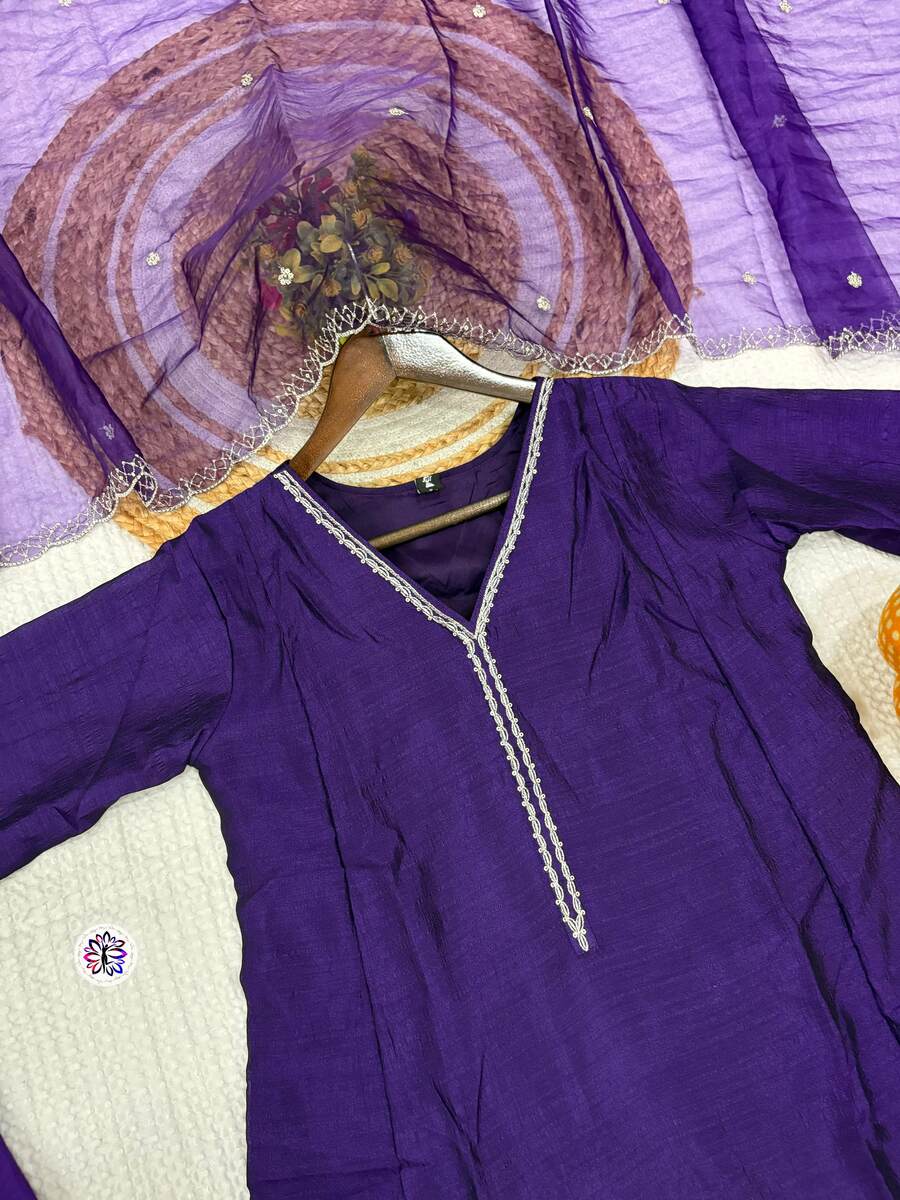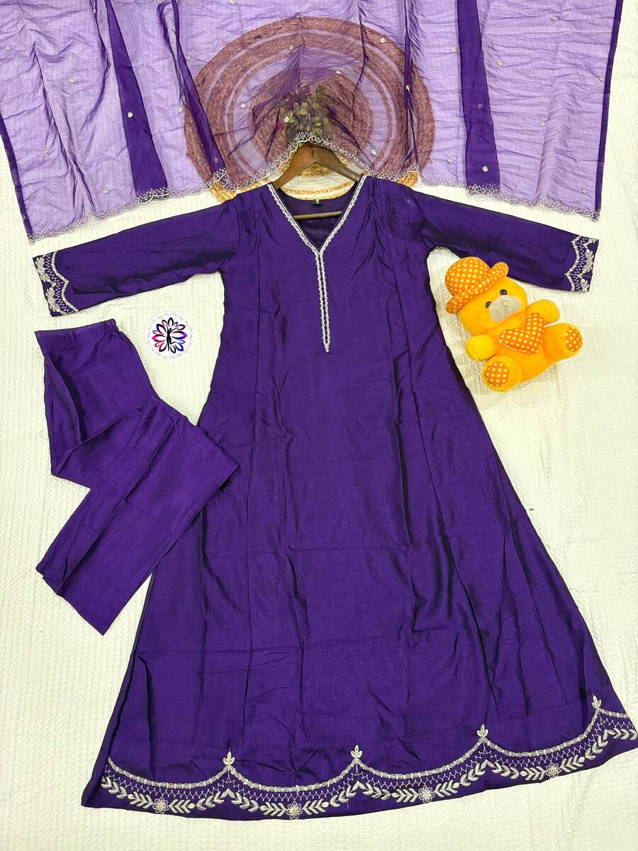 FANCY CHINON FOIL PRINTED WORK TOP BOTTOM WITH DUPATTA PURPLE