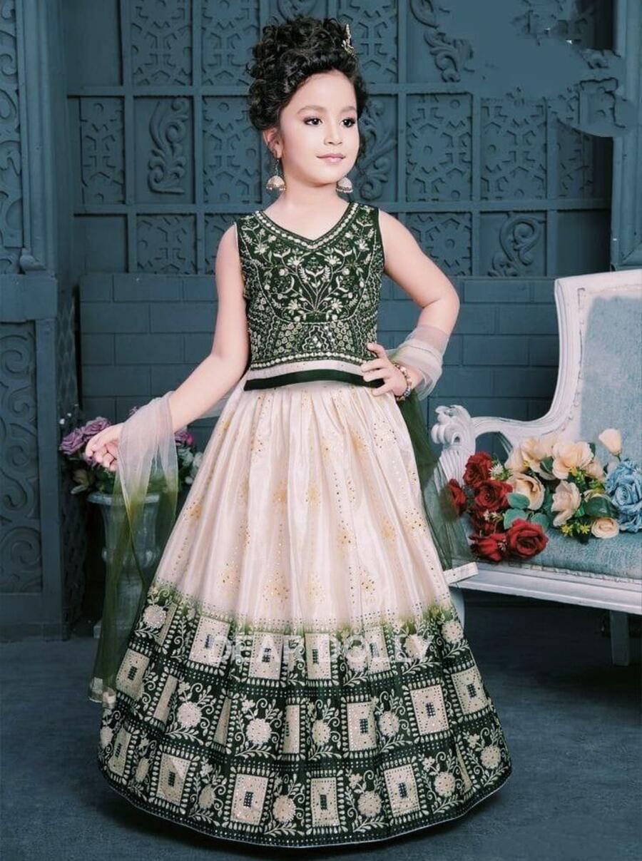 KID WEAR LEHENGA FABRIC :- FAUX GEORGETTE WHIT BEAUTIFUL MULTI-5 MM SEQUENCE EMBROIDERY WORK & BORDER DESIGN ON BLOOMING