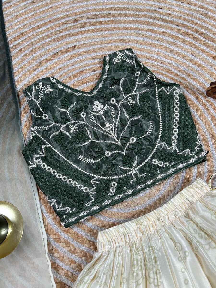 FANCY CHINON SILK EMBROIDERY WORK LEHENGA CHOLI WITH DUPATTA GREEN
