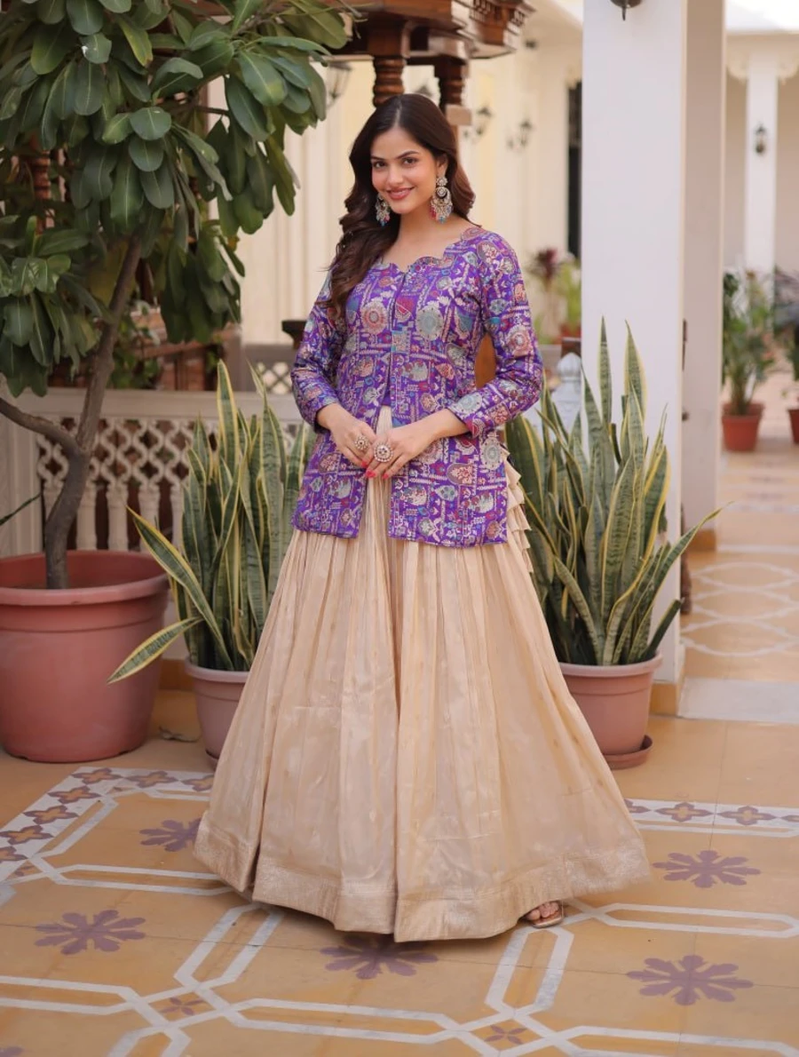 FANCY COSMOS WEAVING JACQUARD TOP LEHENGA SET PURPLE