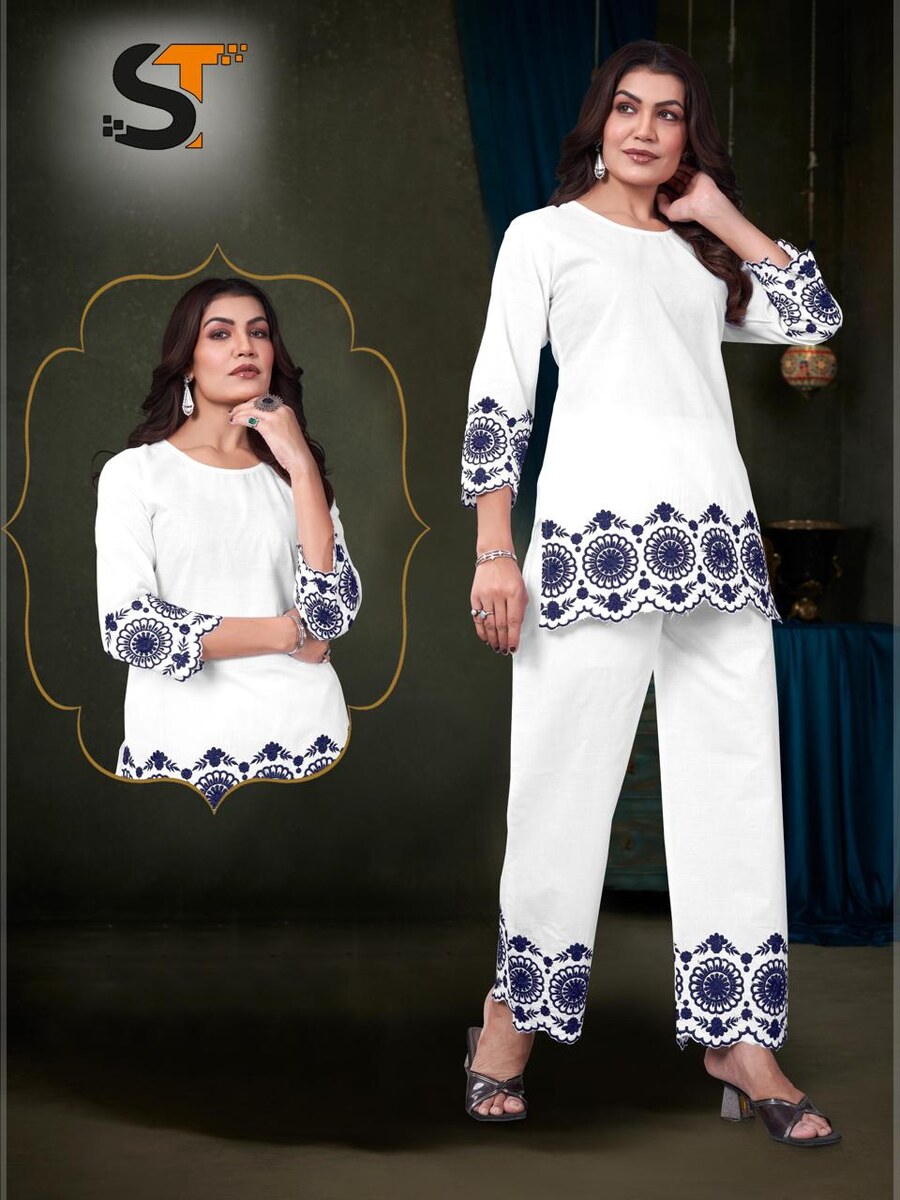 FANCY COTTON EMBROIDERY WORK CO-ORD SET NAVY BLUE
