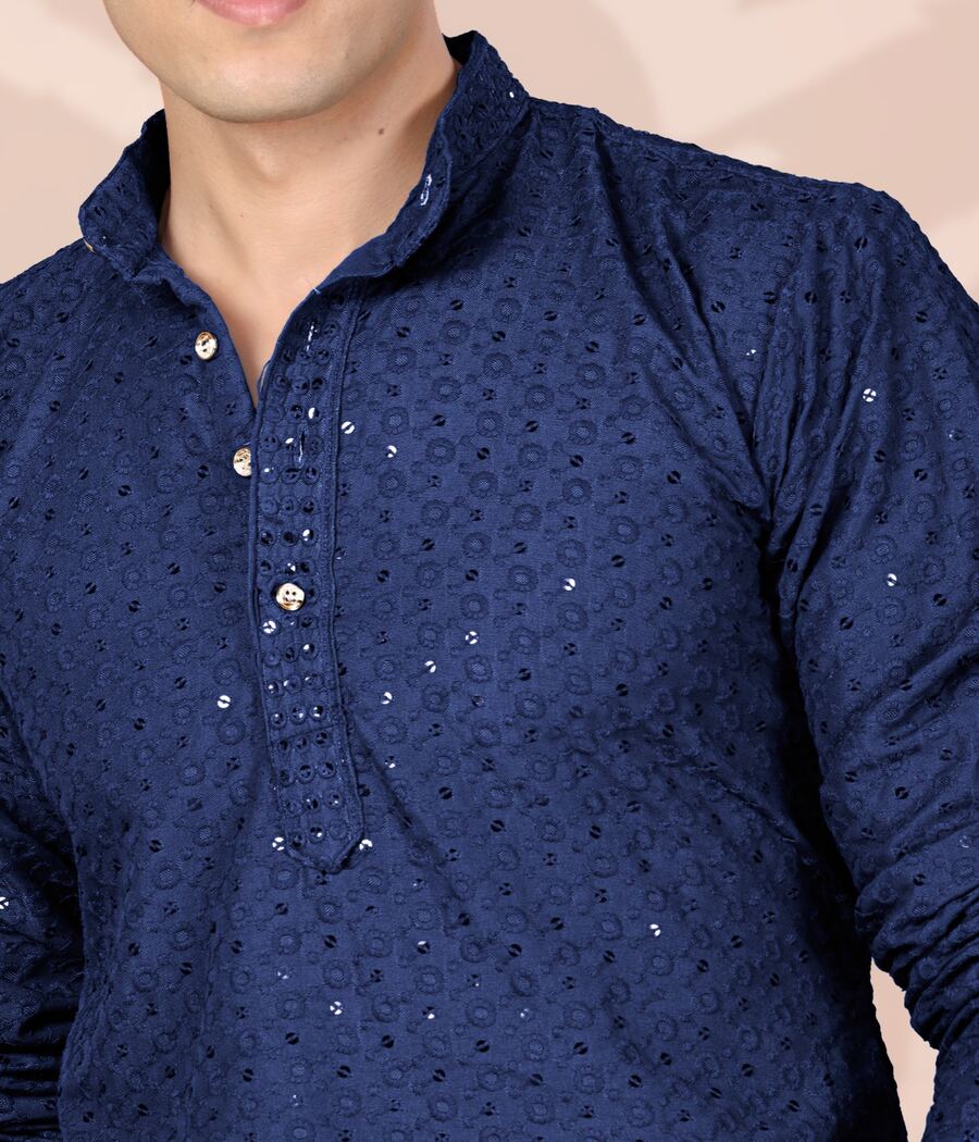FANCY COTTON EMBROIDERY WORK MEN’S ONLY KURTA NAVY BLUE