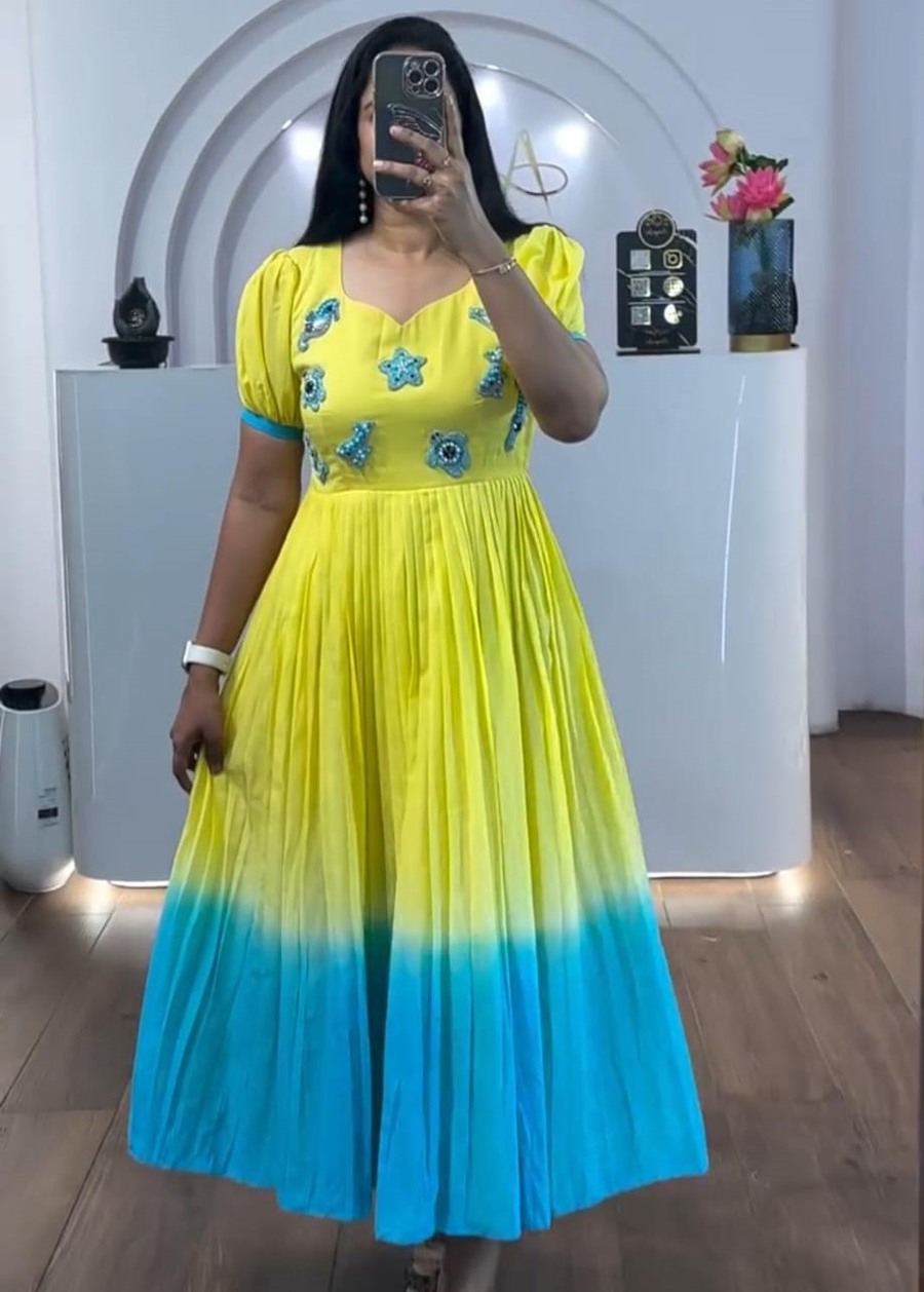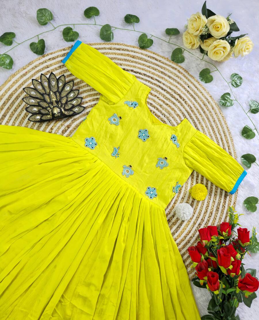 FANCY COTTON PADDING WITH HAND WORK ONE PIECE DRESS LEMON