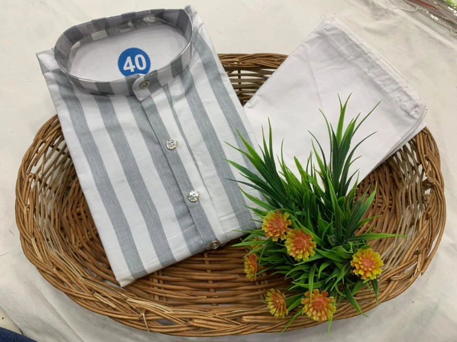 KURTA (FOR MEN) :- PURE COTTON SLUB STRIPE FANCY FABRIC WITH SILVER WEAVING LINING