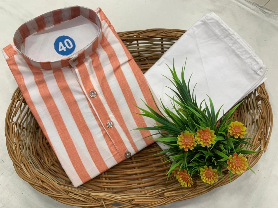 KURTA (FOR MEN) :- PURE COTTON SLUB STRIPE FANCY FABRIC WITH SILVER WEAVING LINING