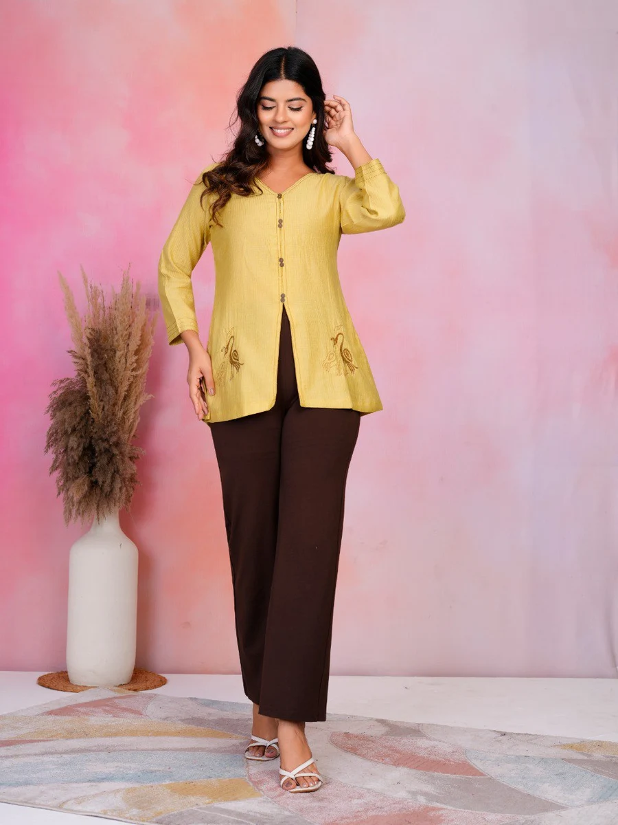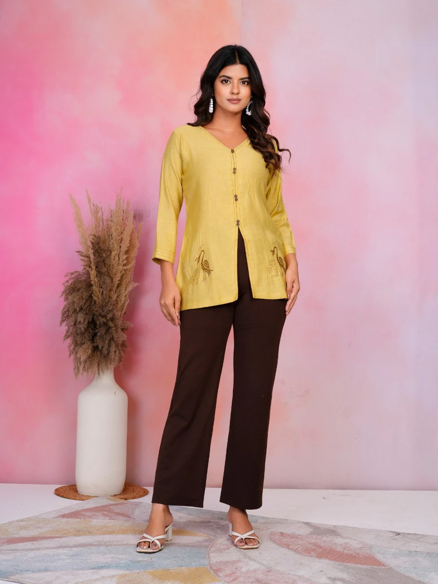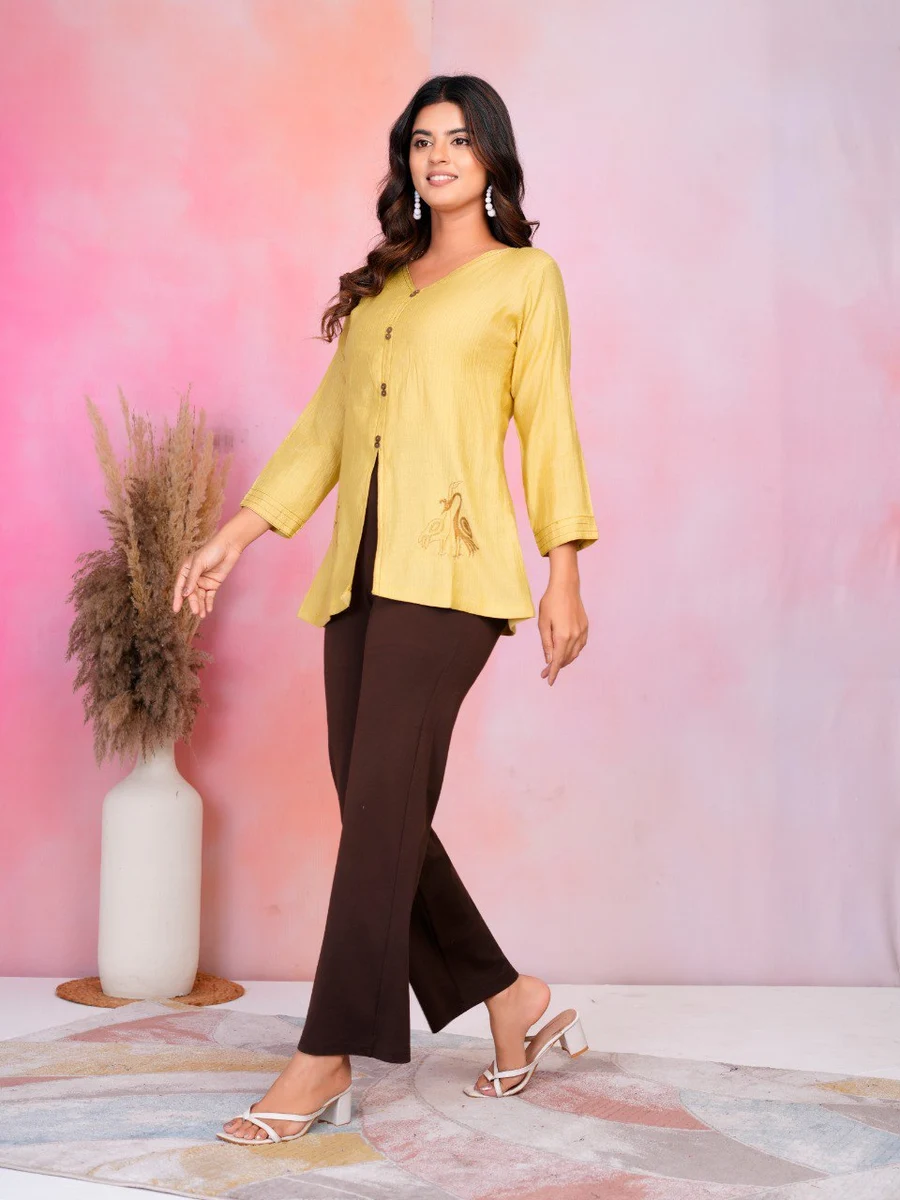 FANCY COTTON SILK EMBROIDERY WORK TOP YELLOW