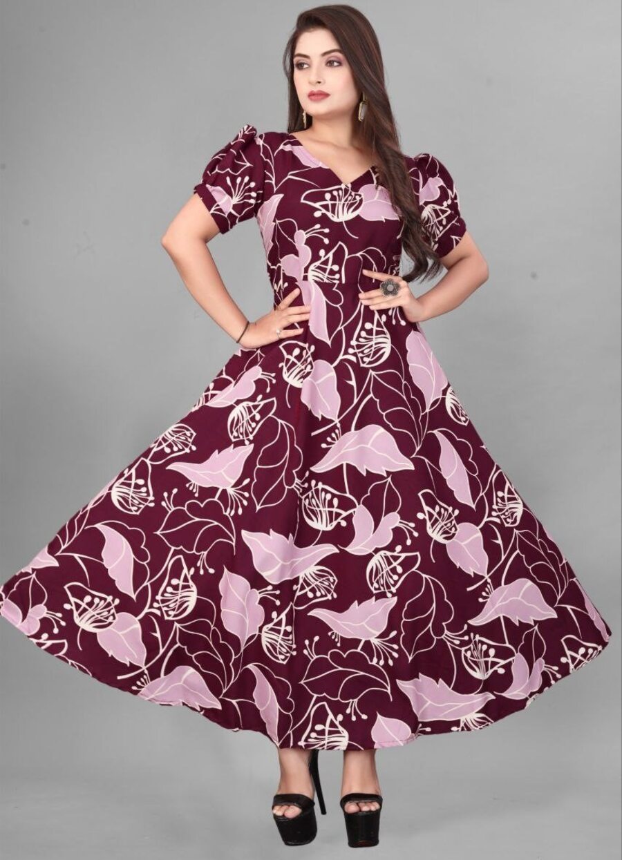 FANCY CREPE FLOWER DIGITAL PRINT WORK GOWN MAROON