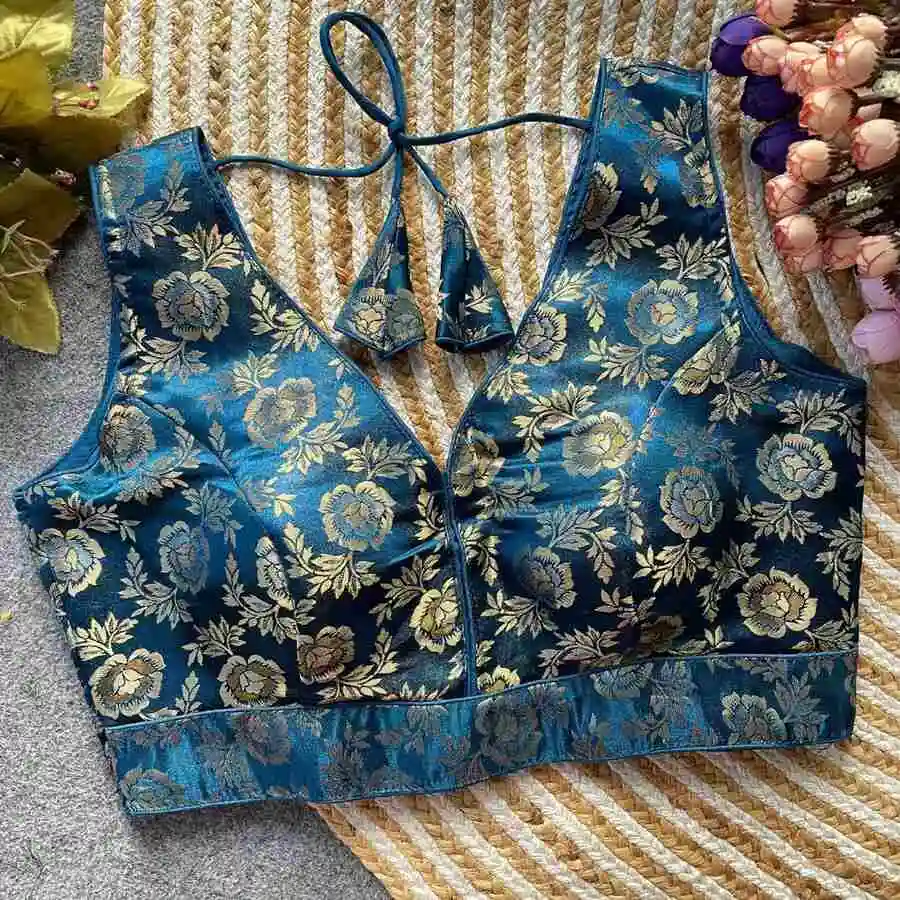 FANCY DOLA SILK PADDED BACK OPEN STYLE STITCHED BLOUSE TEAL