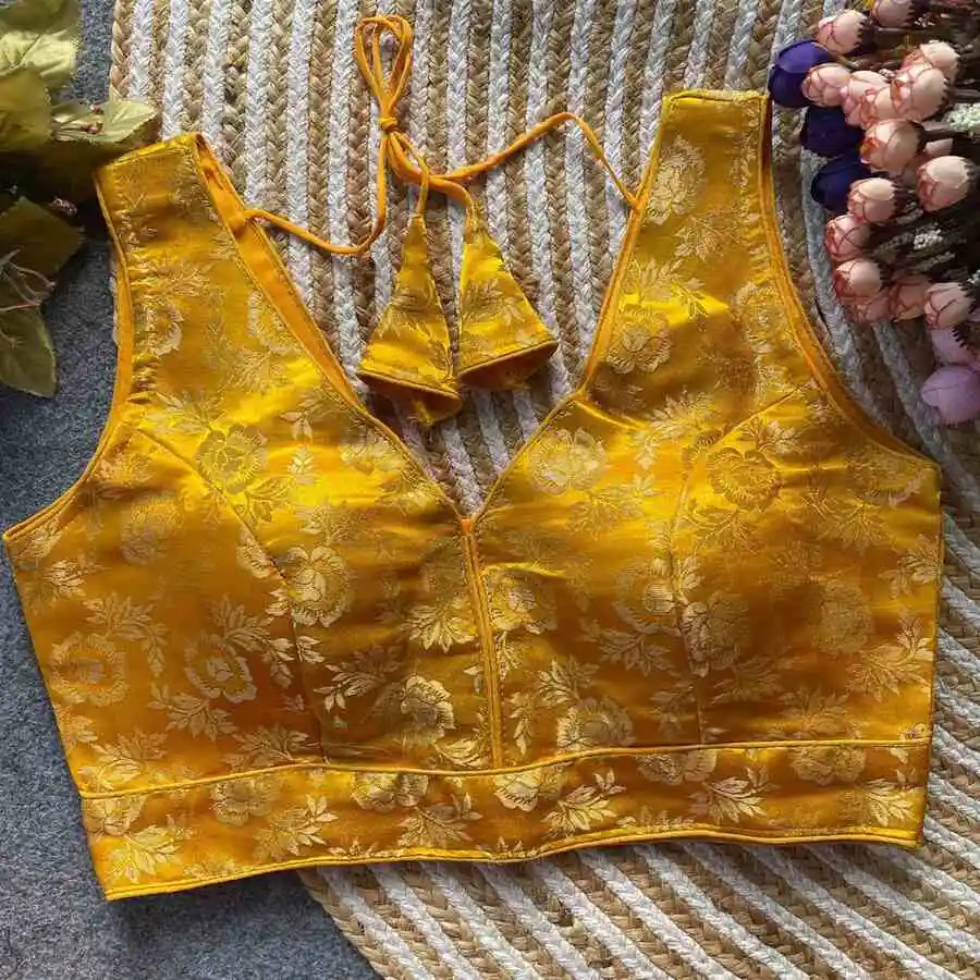 FANCY DOLA SILK PADDED BACK OPEN STYLE STITCHED BLOUSE YELLOW