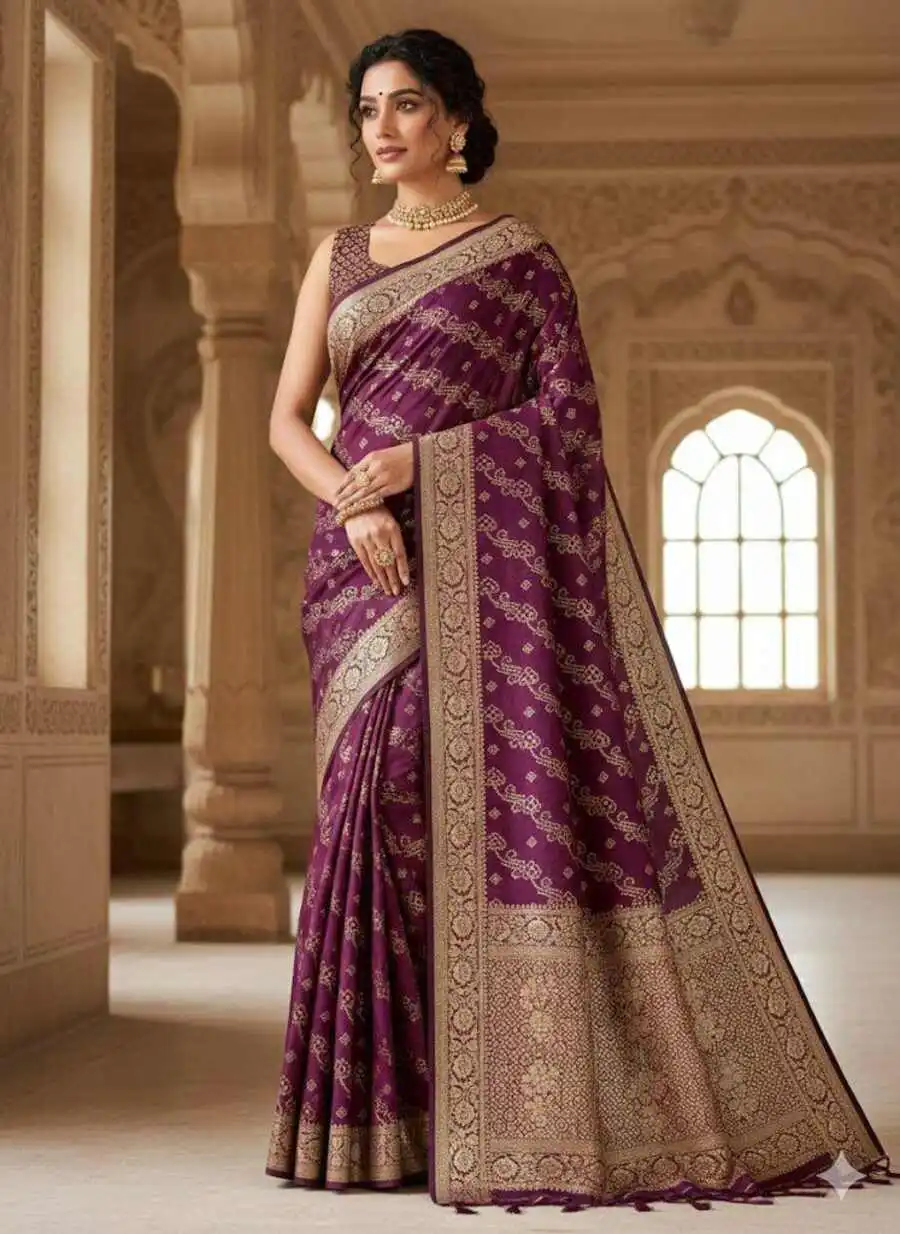 FANCY DOLA SILK ZARI & MEENAKARI WOVEN PALLU WITH BORDER WORK SAREE WITH UNSTITCHED BLOUSE WINE