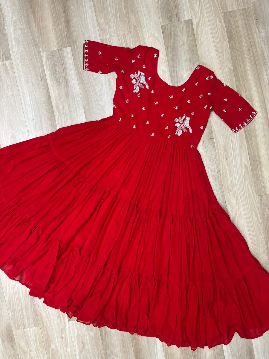 FANCY FAUX BLOOMING BEADS EMBROIDERY WORK GOWN RED