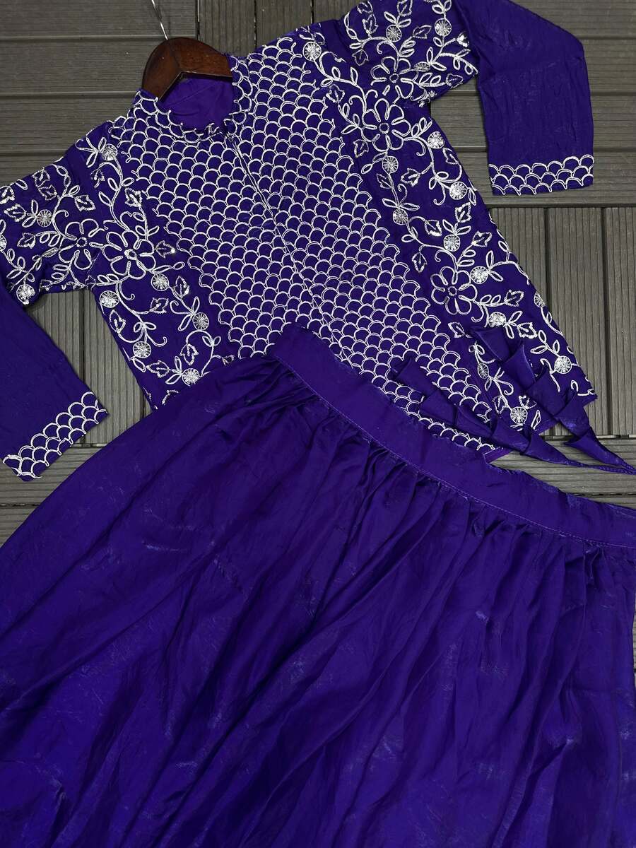 FANCY FENDY SATIN EMBROIDERY CODING WORK TOP LEHENGA WITH DUPATTA PURPLE