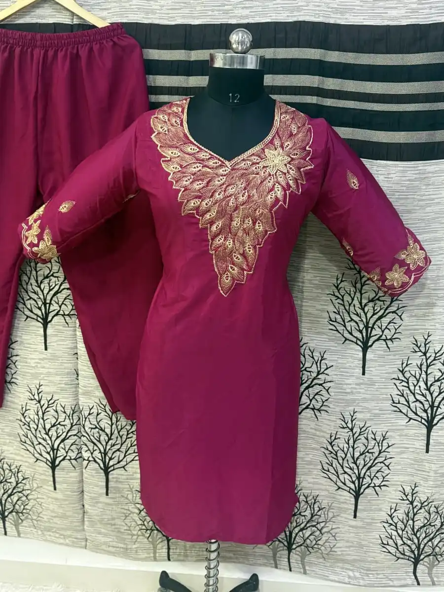 FANCY FRENCH SILK MULTI EMBROIDERY WORK TOP BOTTOM WITH DUPATTA PINK