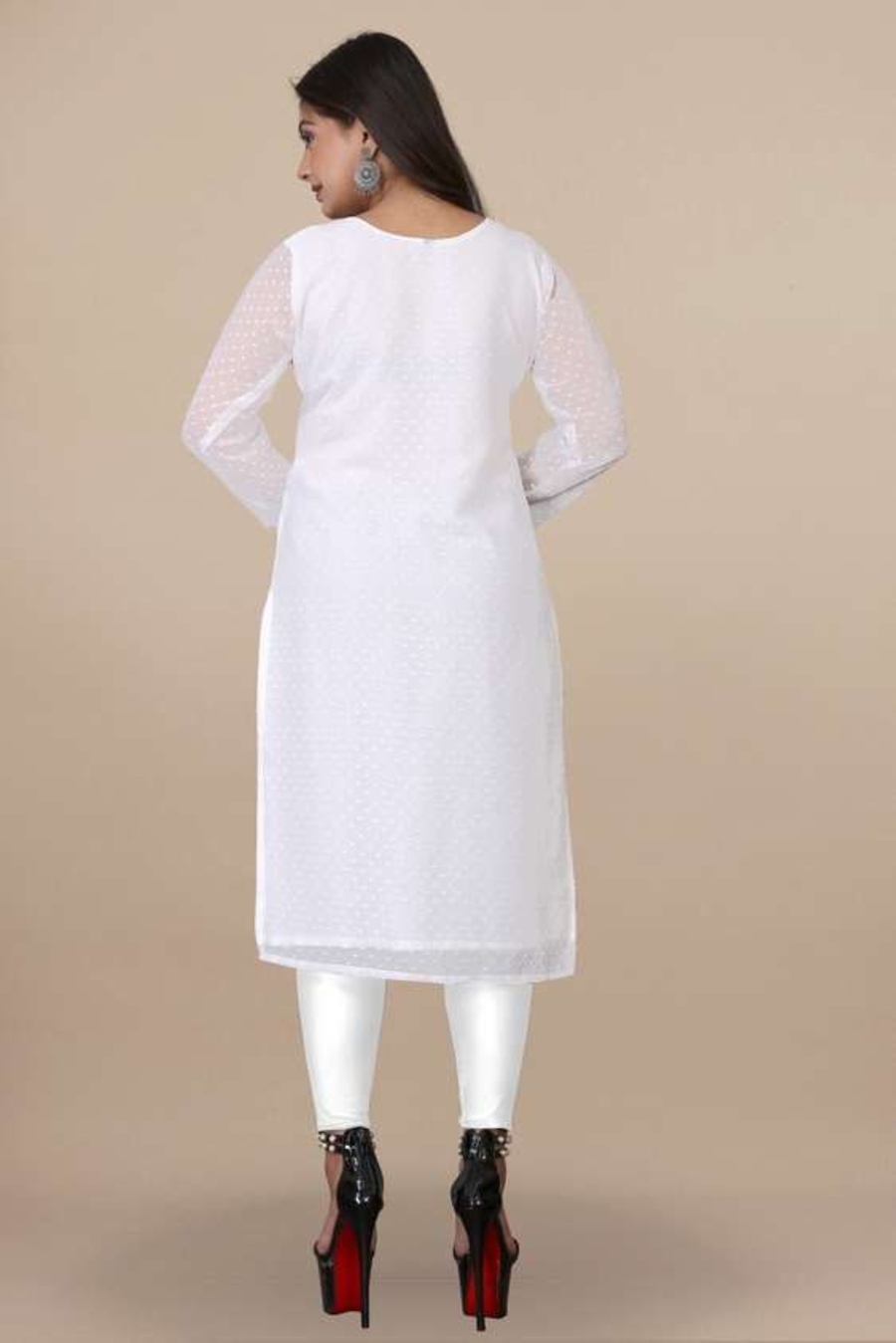 FANCY GEORGETTE 1000 BUTTI ONLY KURTI WHITE