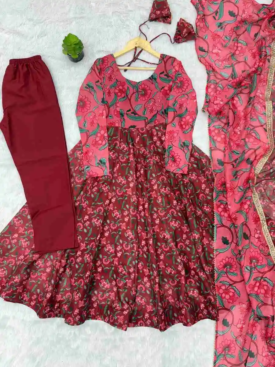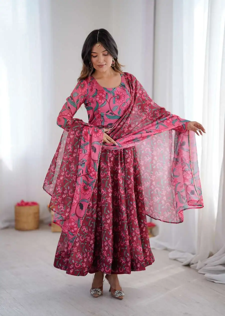 GOWN FEBRIC :- ORGANZA TABBY SILK HEAVY QUALITY FABRIC WITH DIGITAL PRINT AND