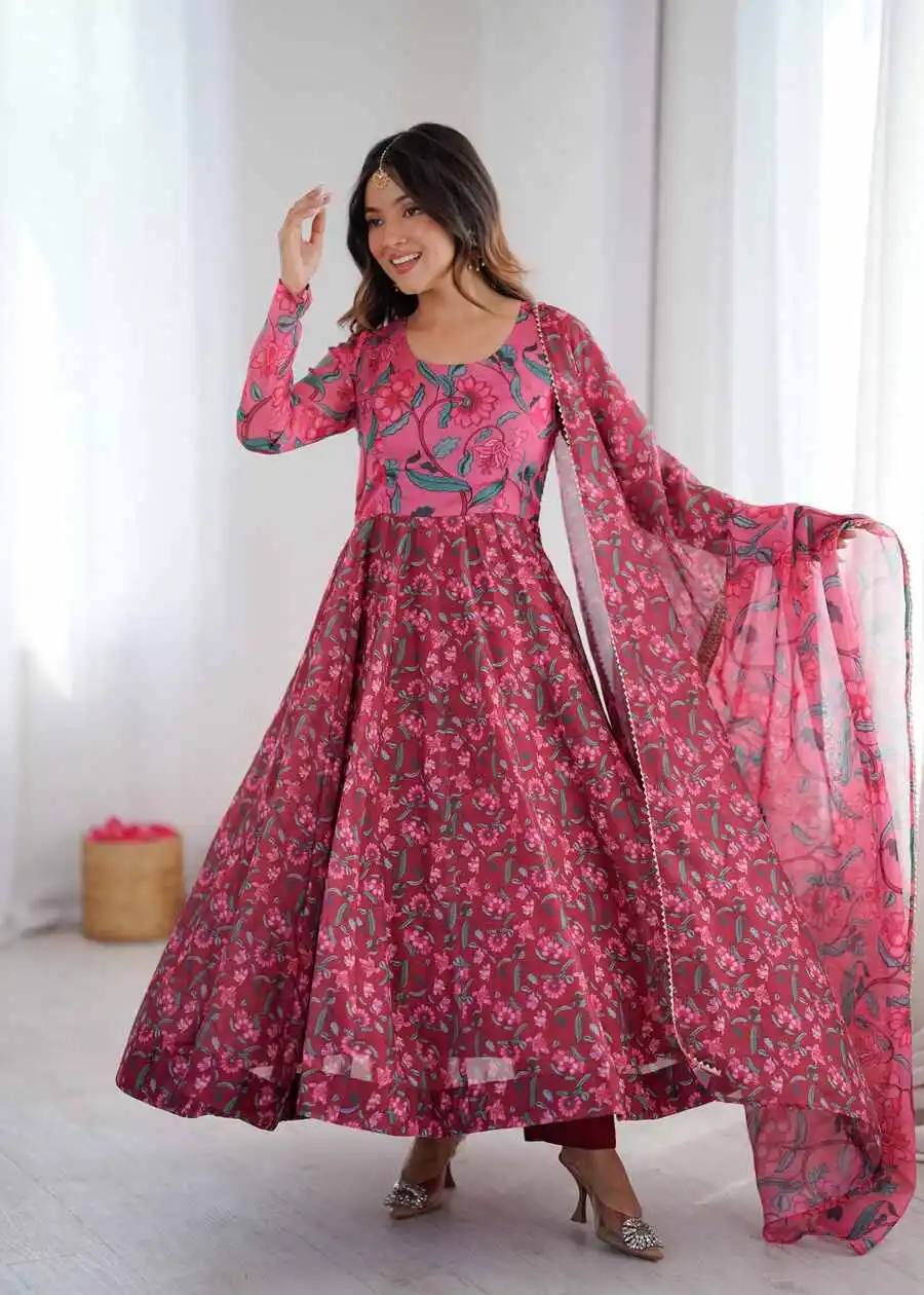 GOWN FABRIC : ORGANZA TABBY SILK HEAVY QUALITY FABRIC WITH DIGITAL PRINT AND ,FULL SLEEVE