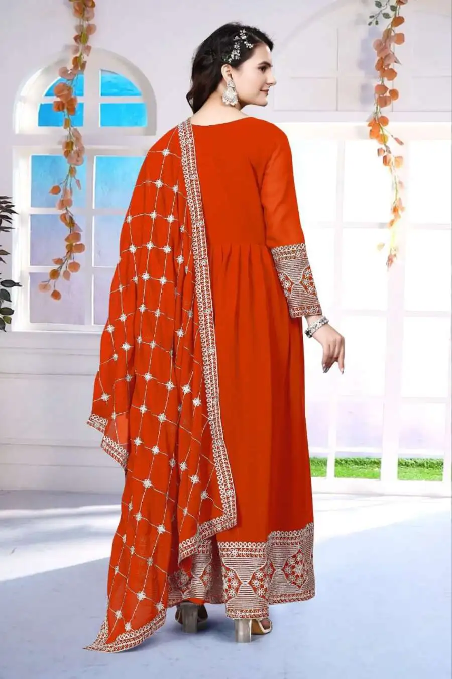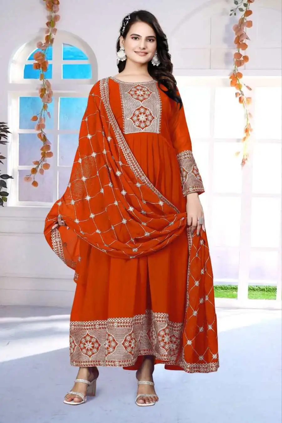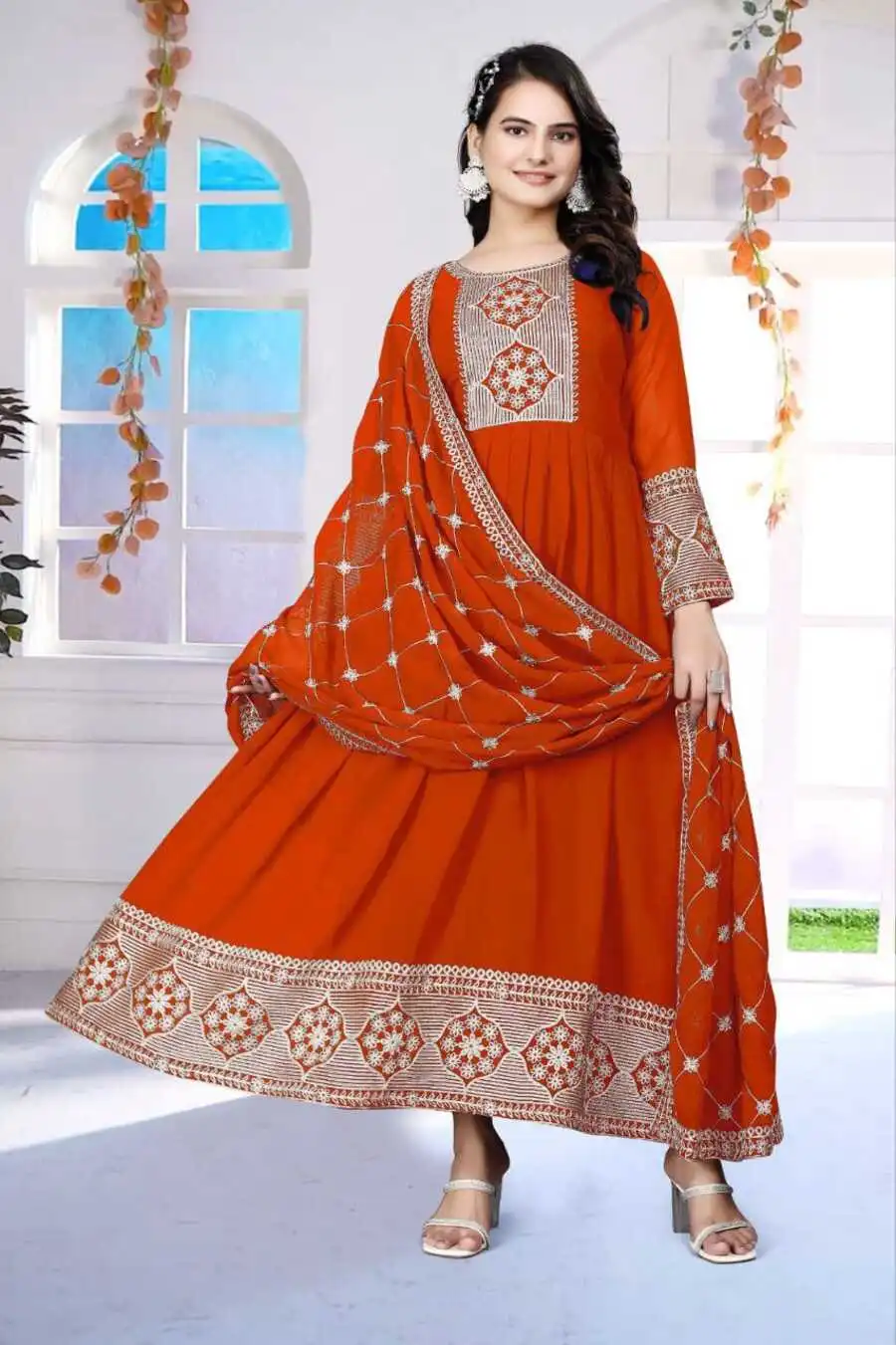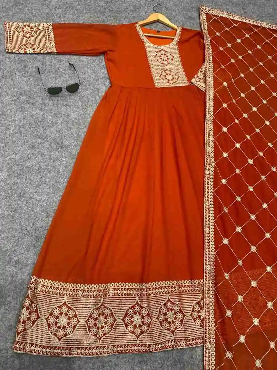 FANCY GEORGETTE CHAIN WORK GOWN WITH DUPATTA ORANGE
