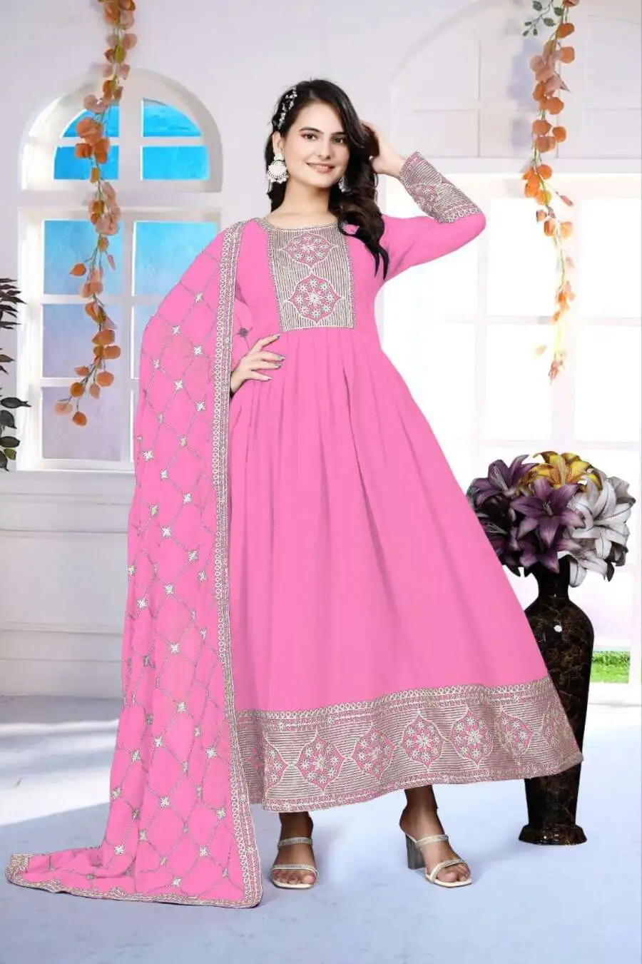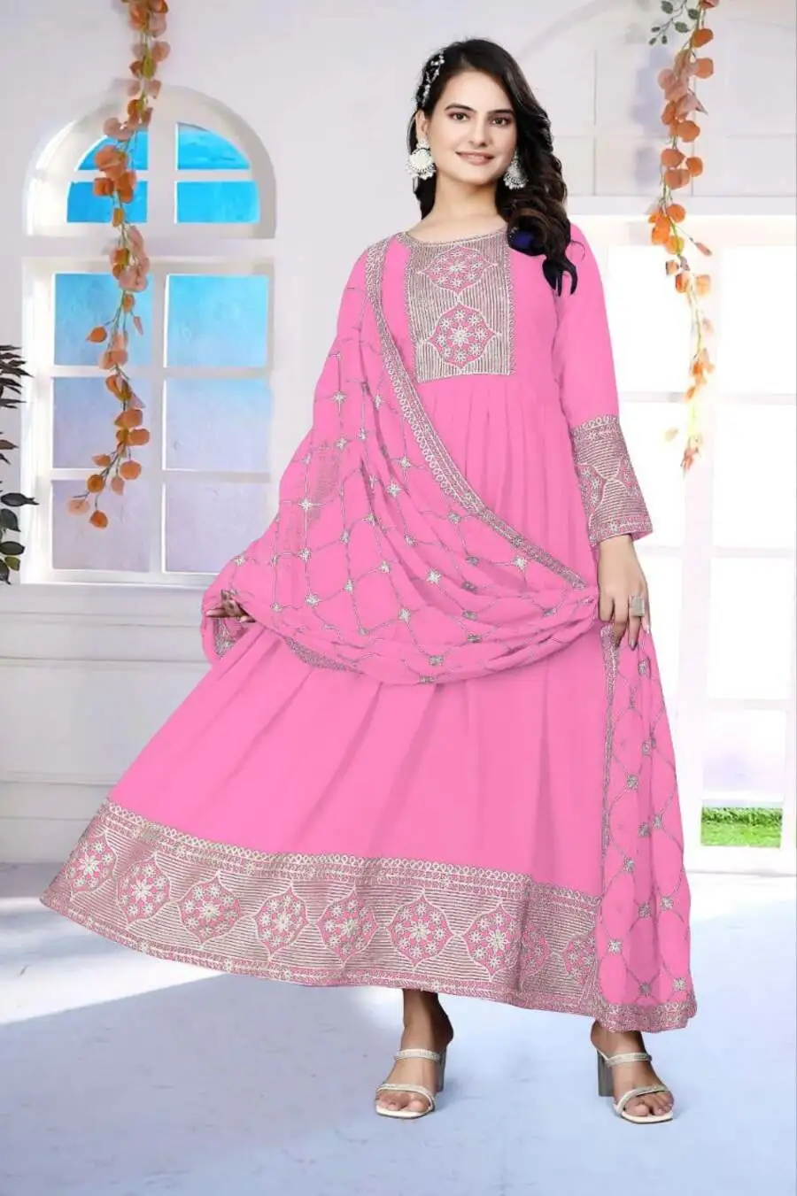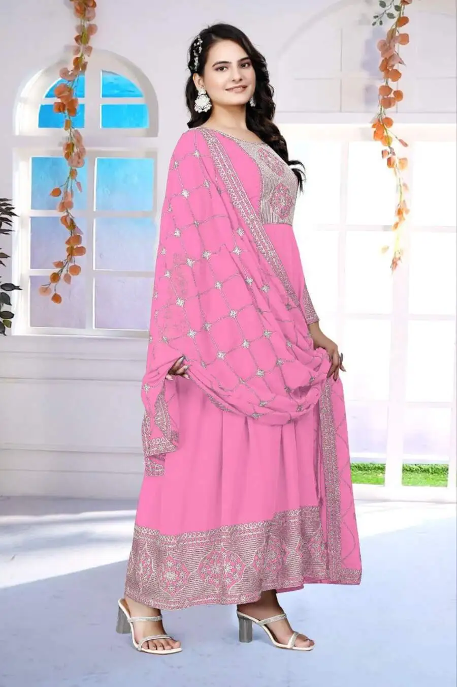 GOWN FABRIC : GEORGETTE WITH CHIKANKARI EMBROIDERY WORK & HALF INNER INSIDE
