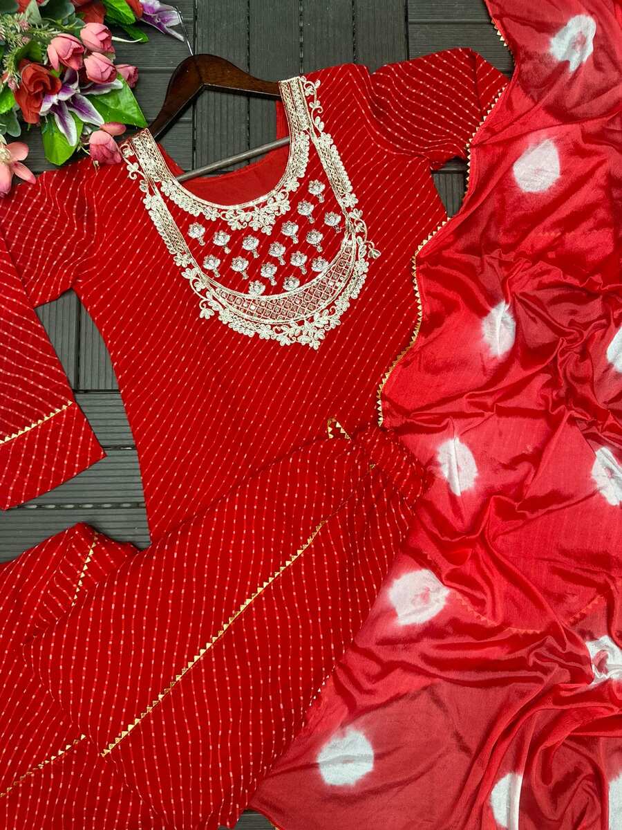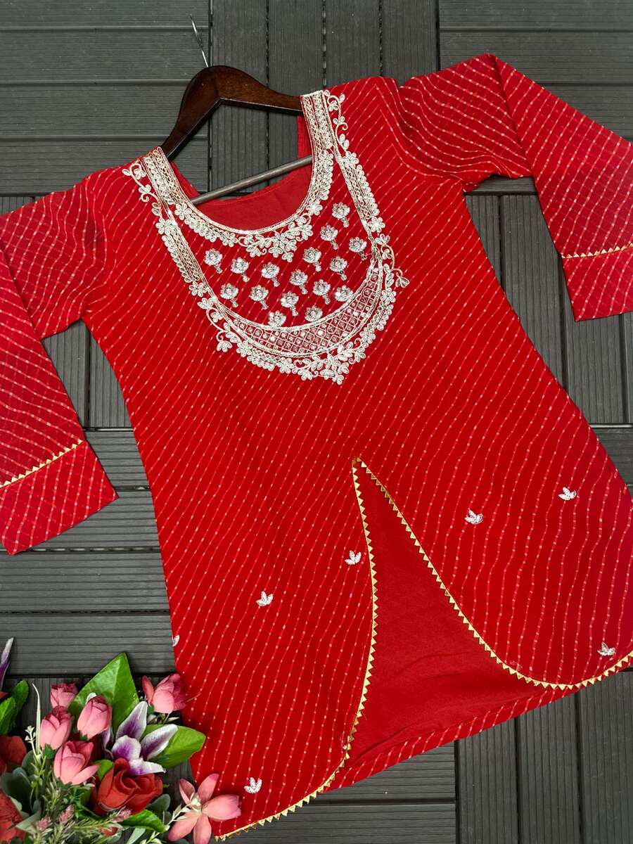 FANCY GEORGETTE EMBROIDERY CODING WORK WITH DIGITAL PRINT WORK TOP LEHENGA WITH DUPATTA RED