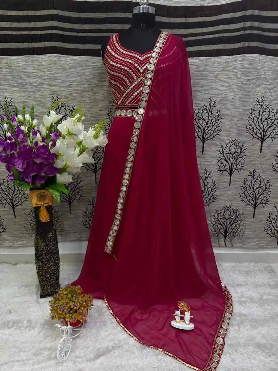 FANCY GEORGETTE EMBROIDERY FOIL WORK LEHENGA CHOLI WITH DUPATTA RANI