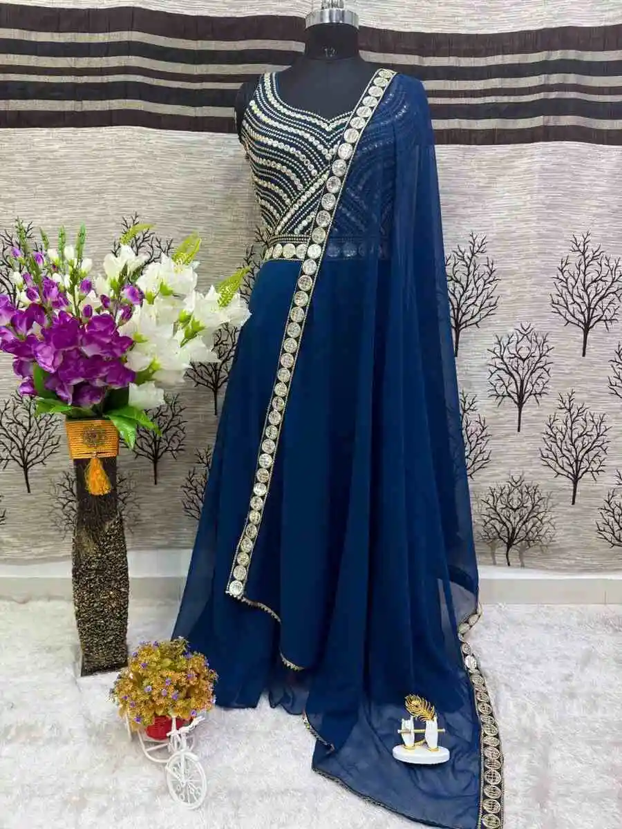 DUPATTA FABRIC :- HEAVY FAUX GEORGETTE 3MM SEQUENCE WORK, FANCY BORDER LACE WORK (DUPATTA SIZE 2.40 METER)