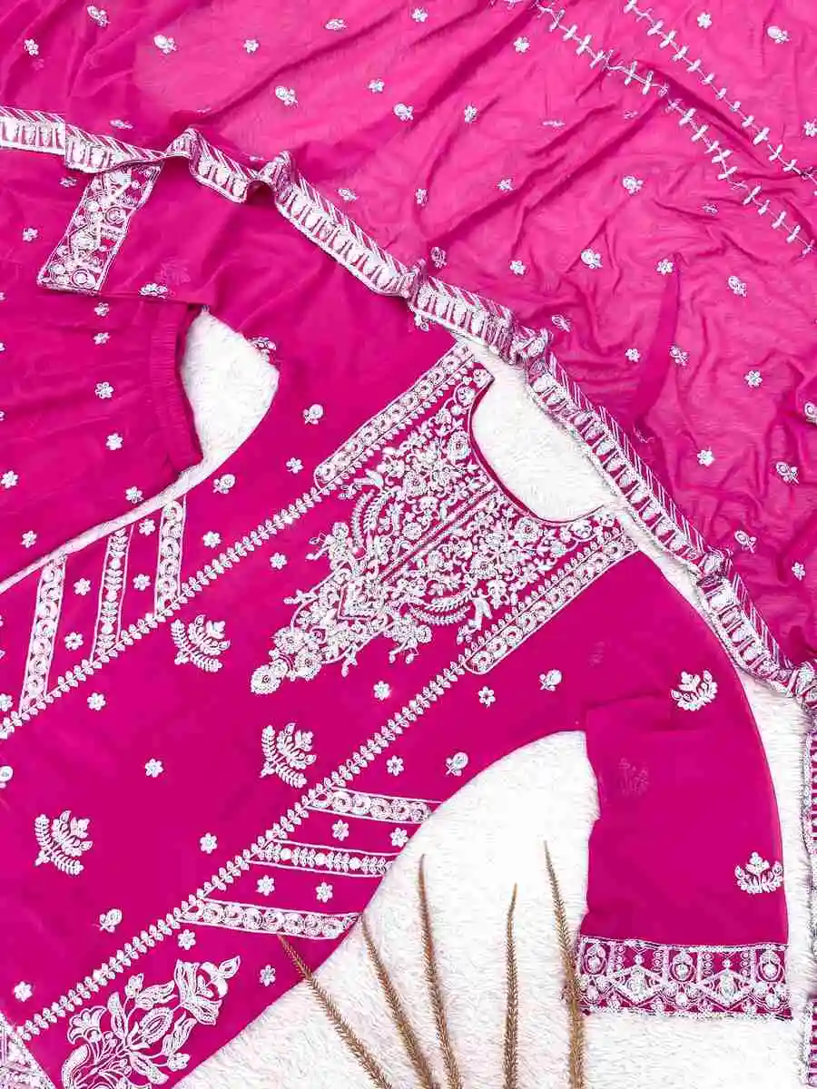 FANCY GEORGETTE EMBROIDERY SEQUENCE WITH READY MADE LACE BORDER WORK TOP SHARARA WITH DUPATTA PINK