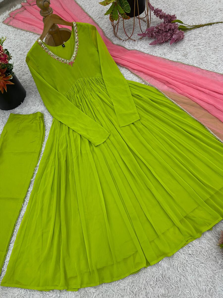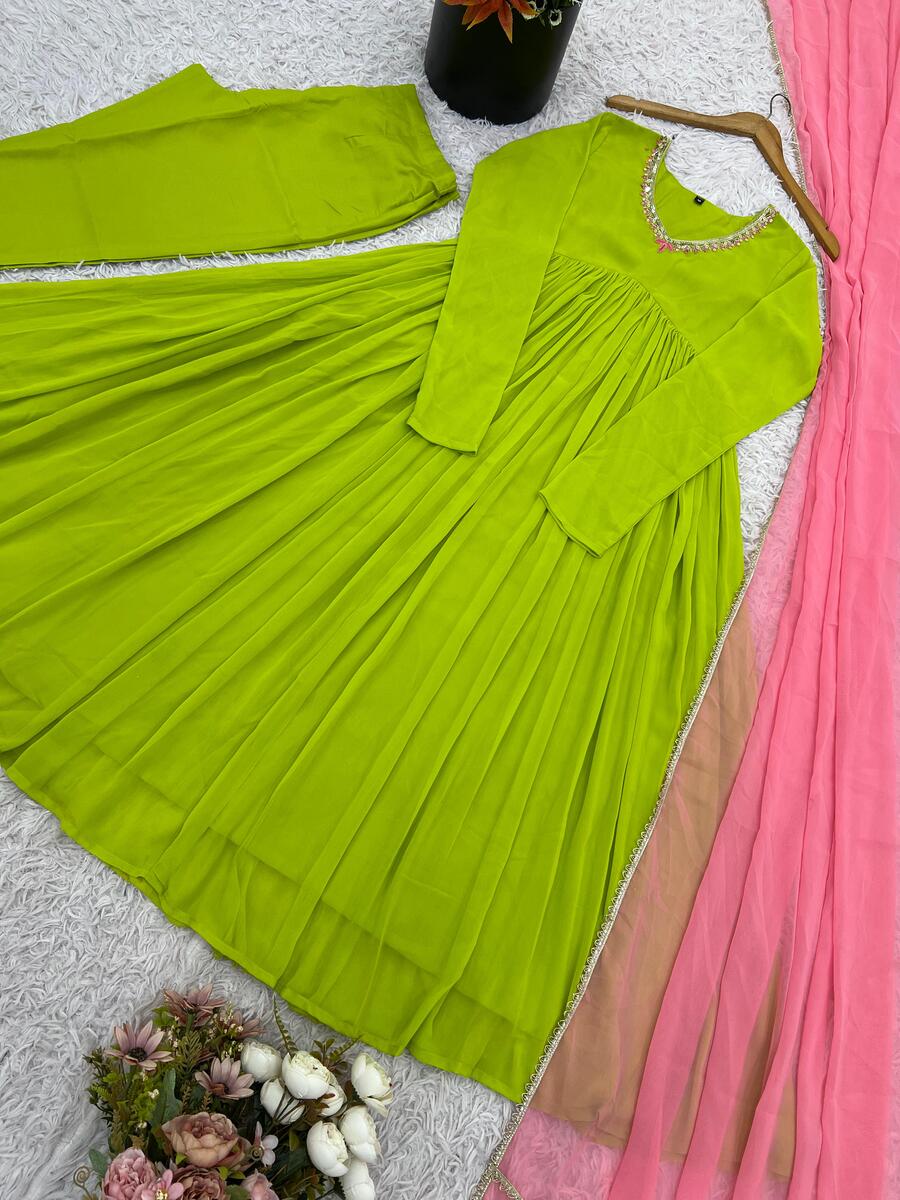 FANCY GEORGETTE EMBROIDERY SEQUENCE WORK GOWN BOTTOM WITH DUPATTA PARROT GREEN
