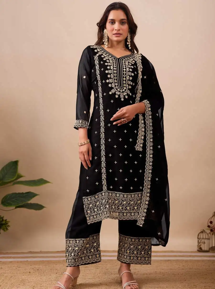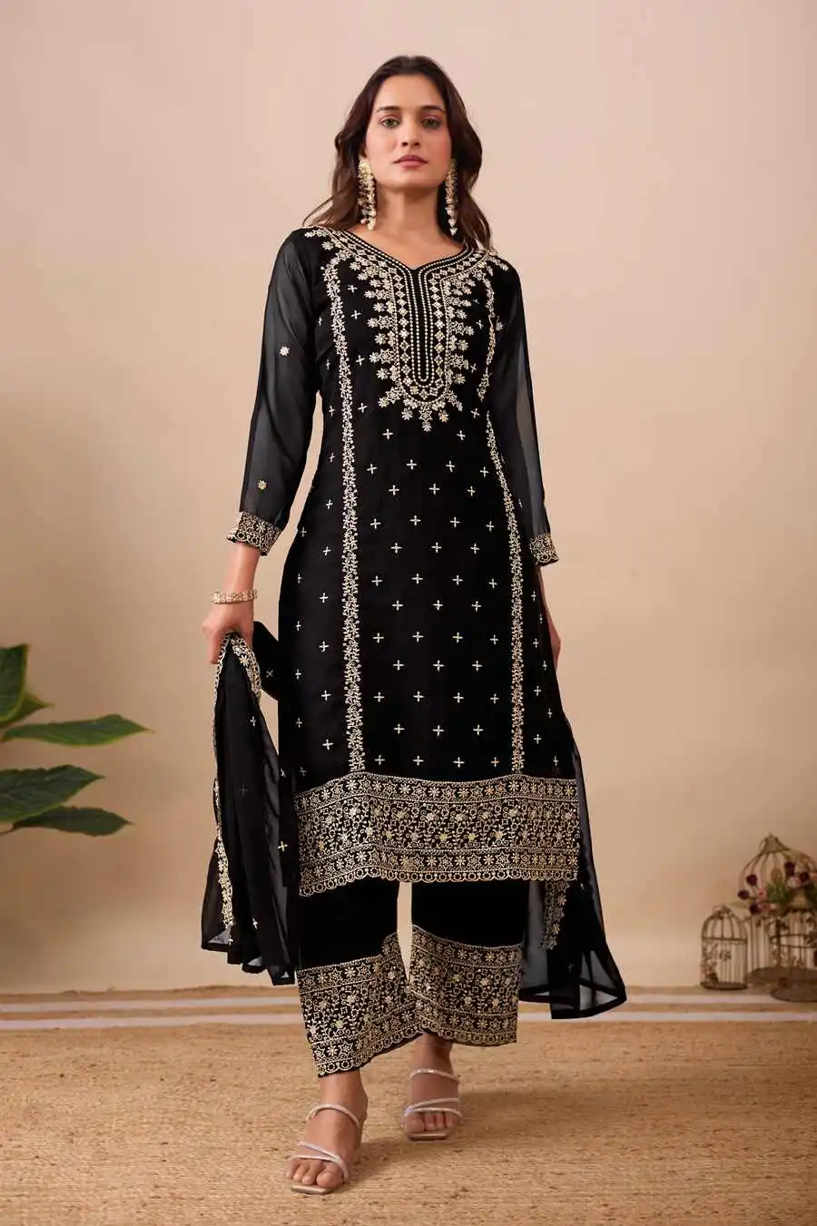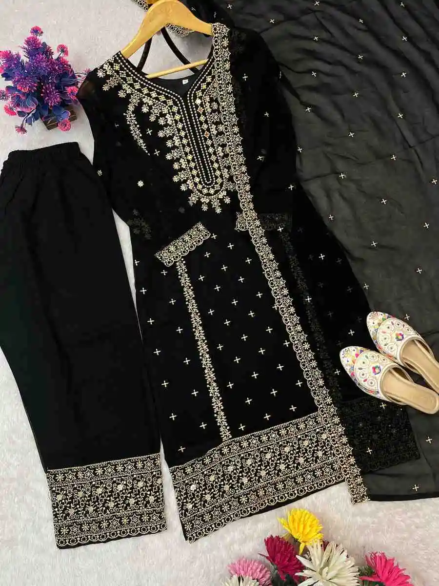 FANCY GEORGETTE EMBROIDERY SEQUENCE WORK TOP BOTTOM WITH DUPATTA BLACK