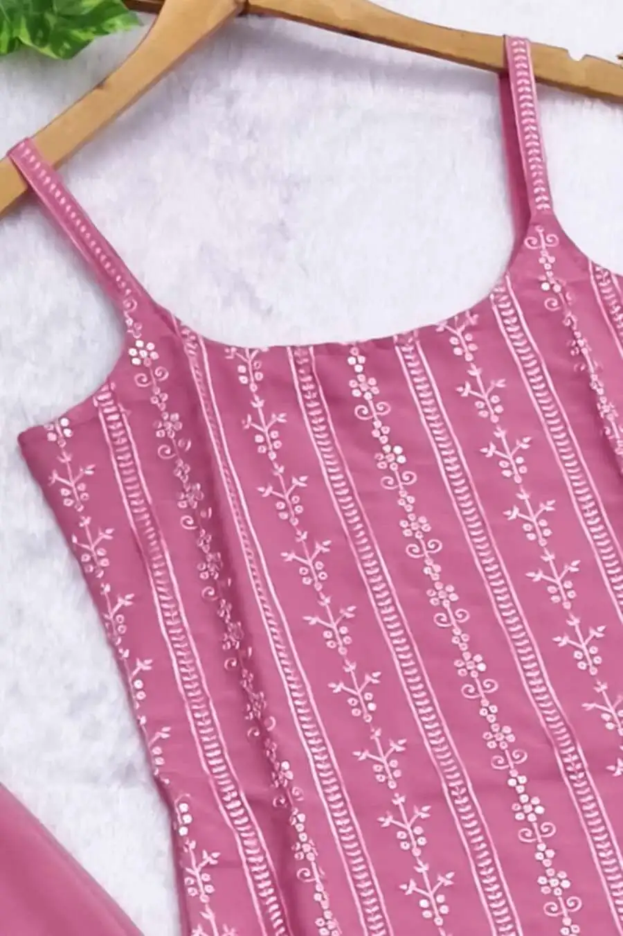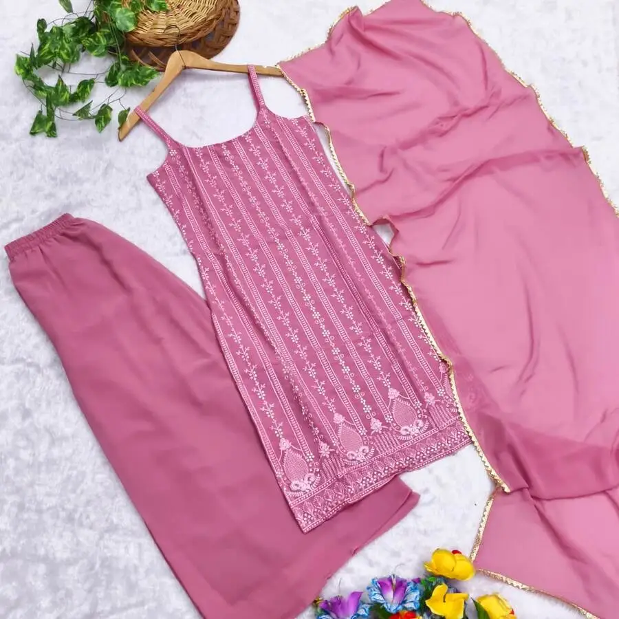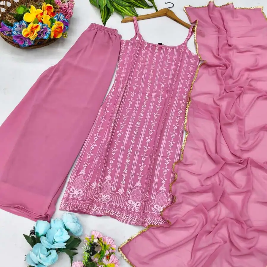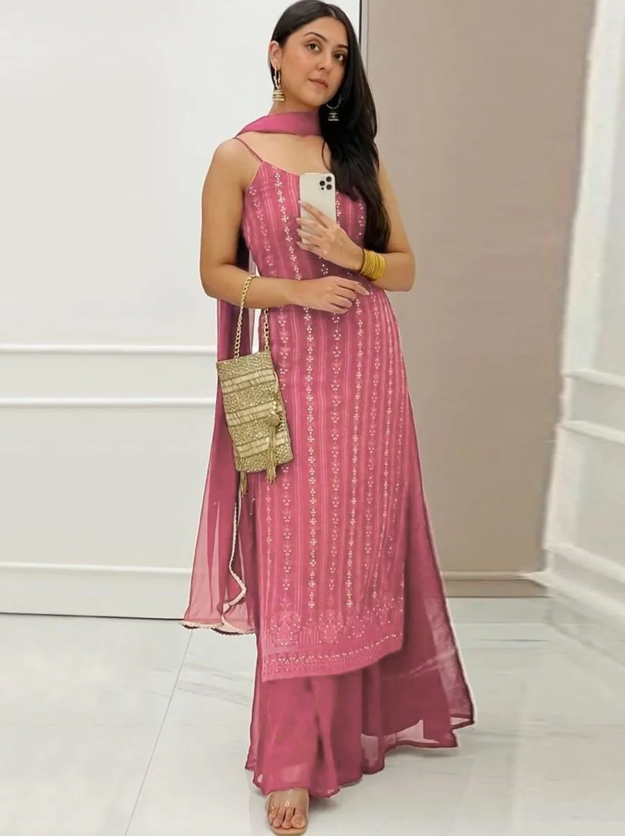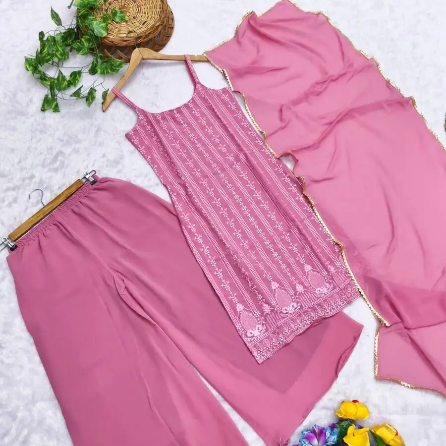 FANCY GEORGETTE EMBROIDERY SEQUENCE WORK TOP PALAZZO WITH DUPATTA BABY PINK