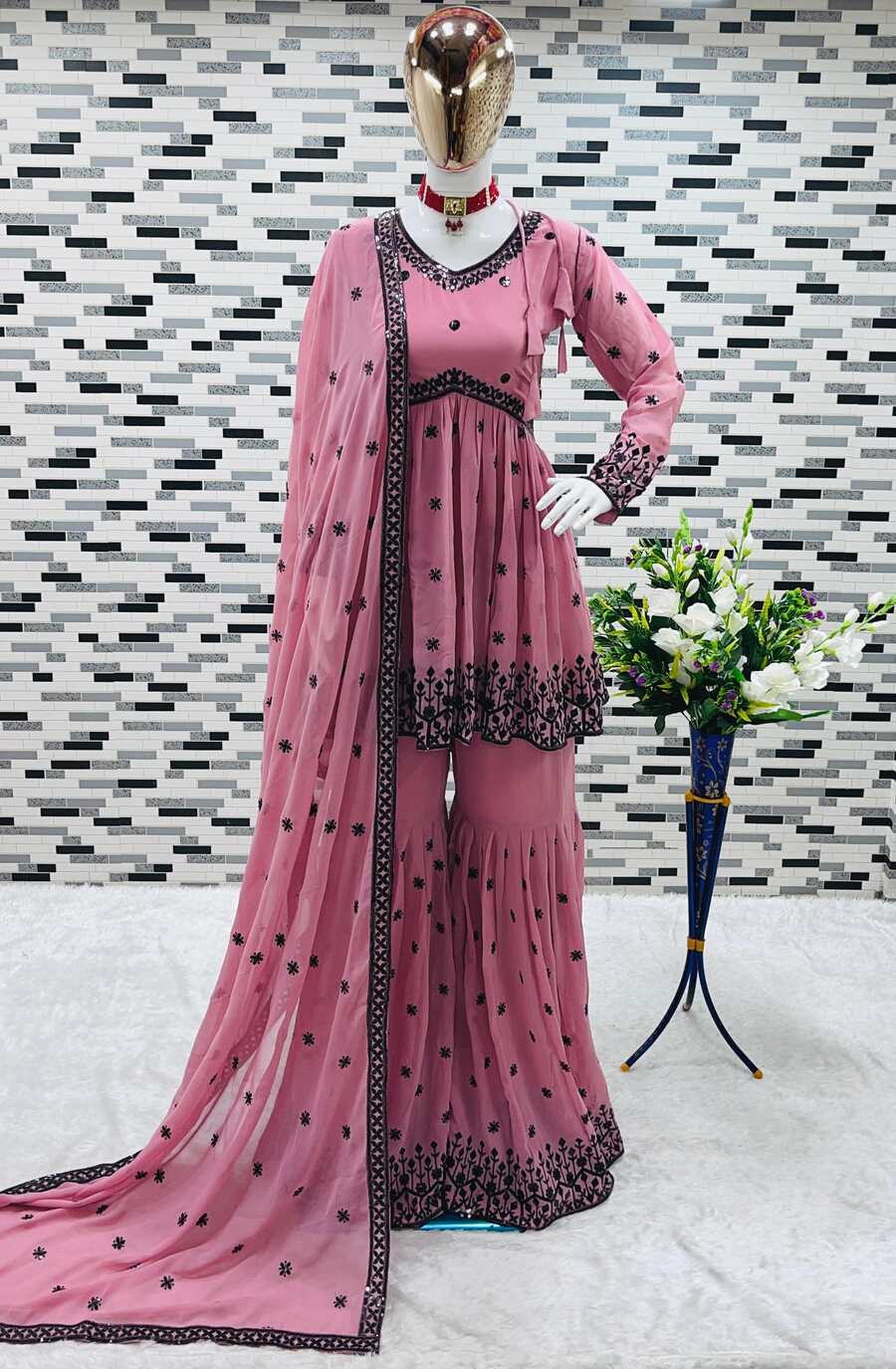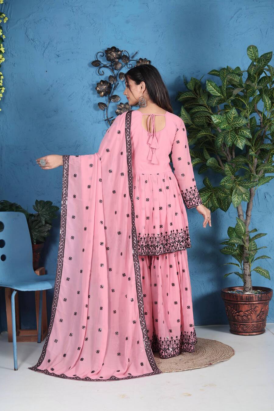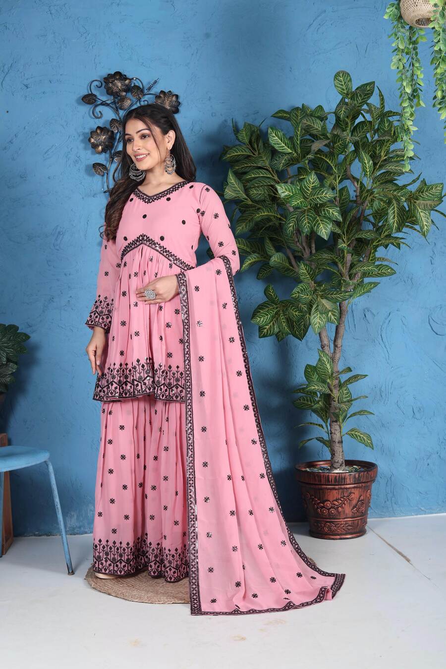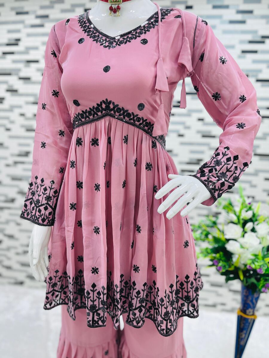 FANCY GEORGETTE EMBROIDERY SEQUENCE WORK TOP SHARARA WITH DUPATTA BABY PINK