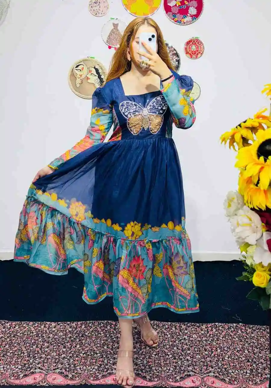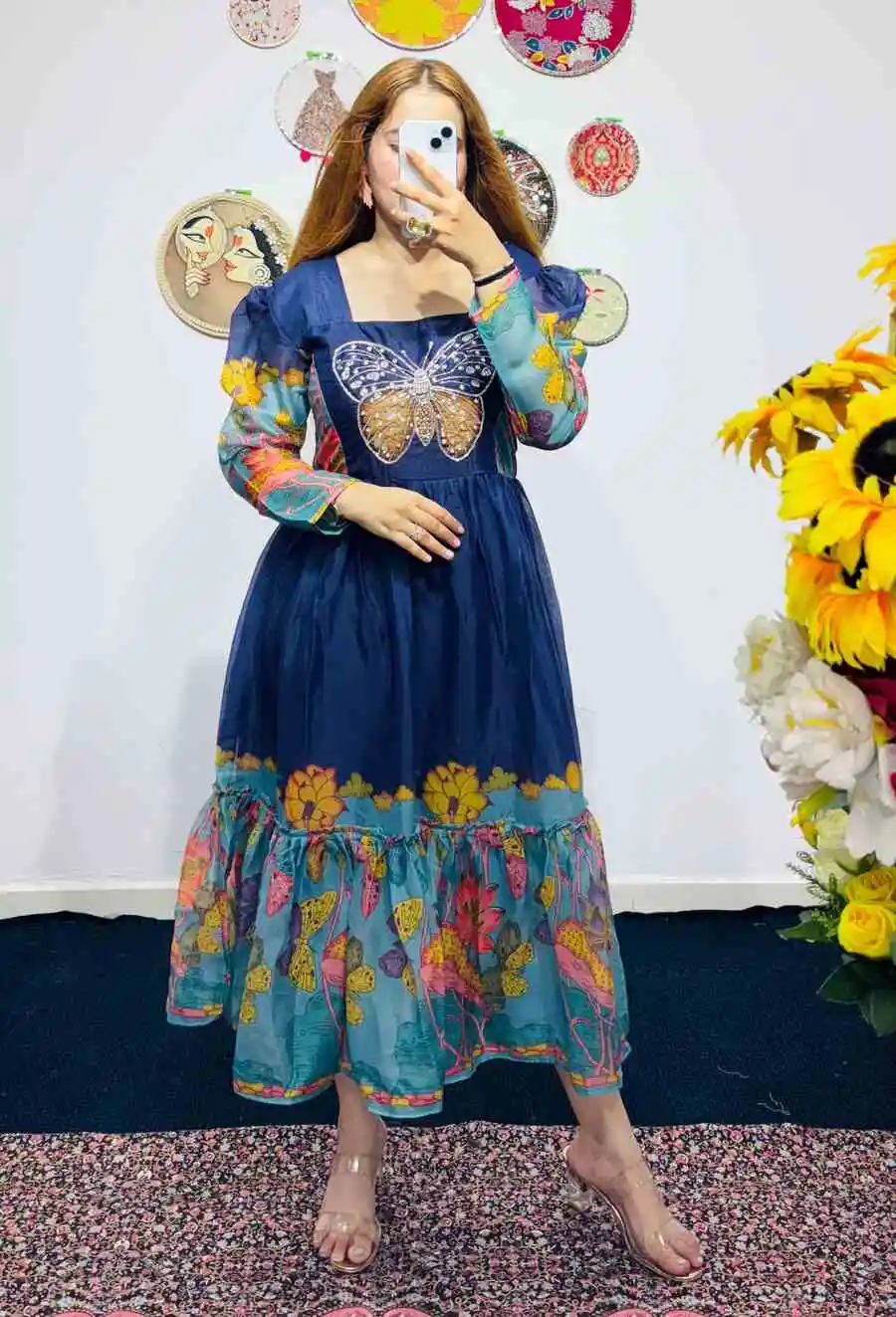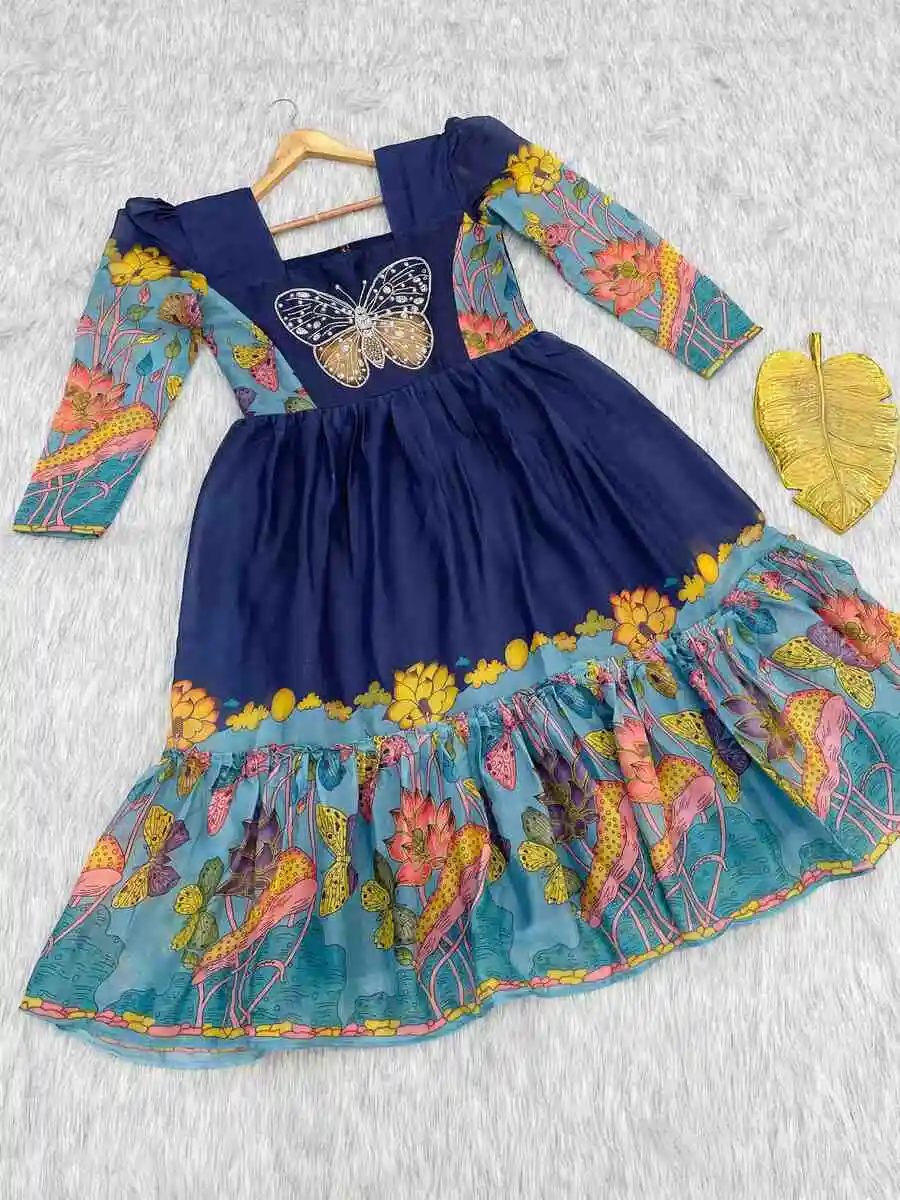 FANCY GEORGETTE HANDWORK ONE PIECE NAVY BLUE