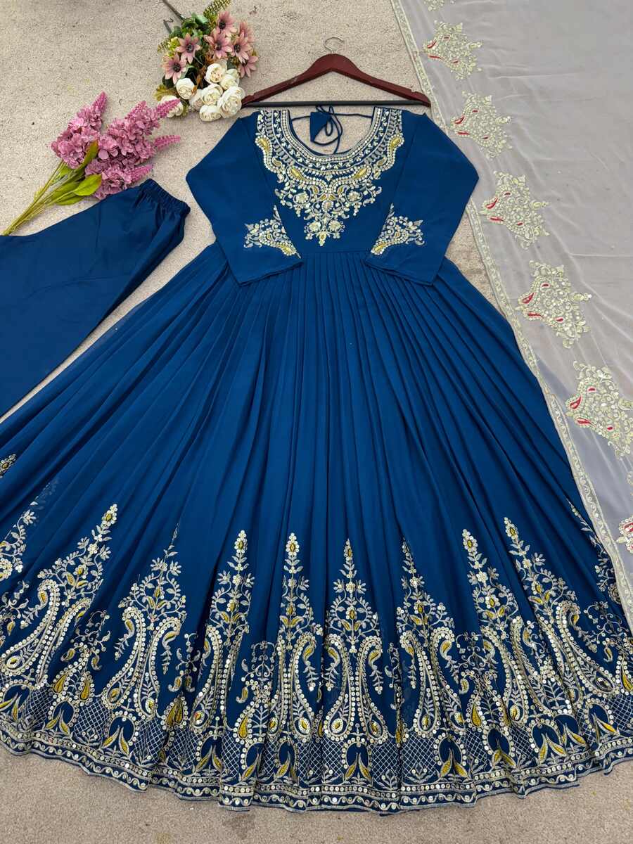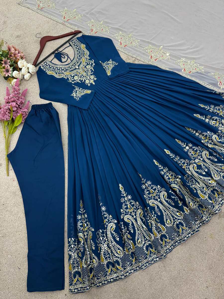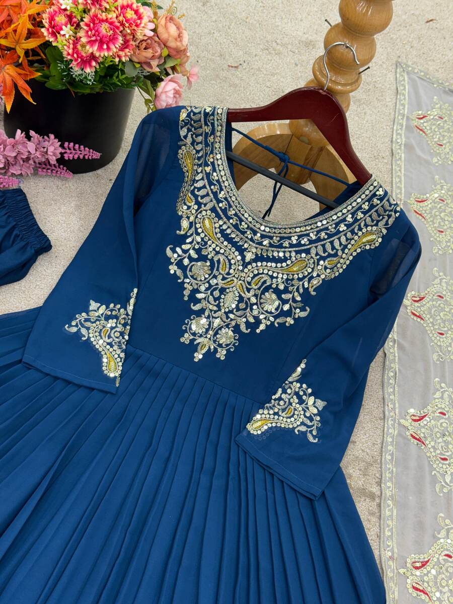 FANCY GEORGETTE MULTI THREAD EMBROIDERY SEQUENCE WORK GOWN BOTTOM WITH DUPATTA BLUE