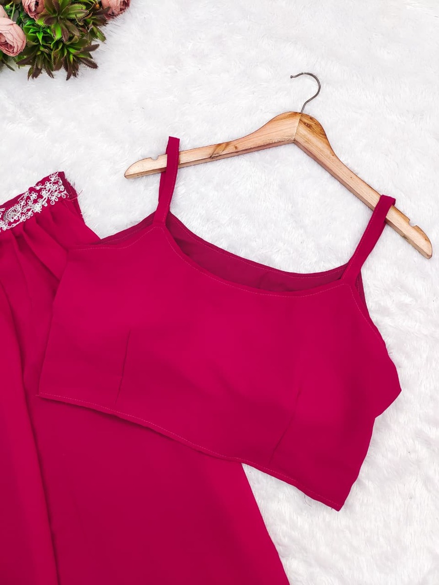 FANCY GEORGETTE MULTI THREAD EMBROIDERY WORK TOP BLOUSE WITH LEHENGA RANI