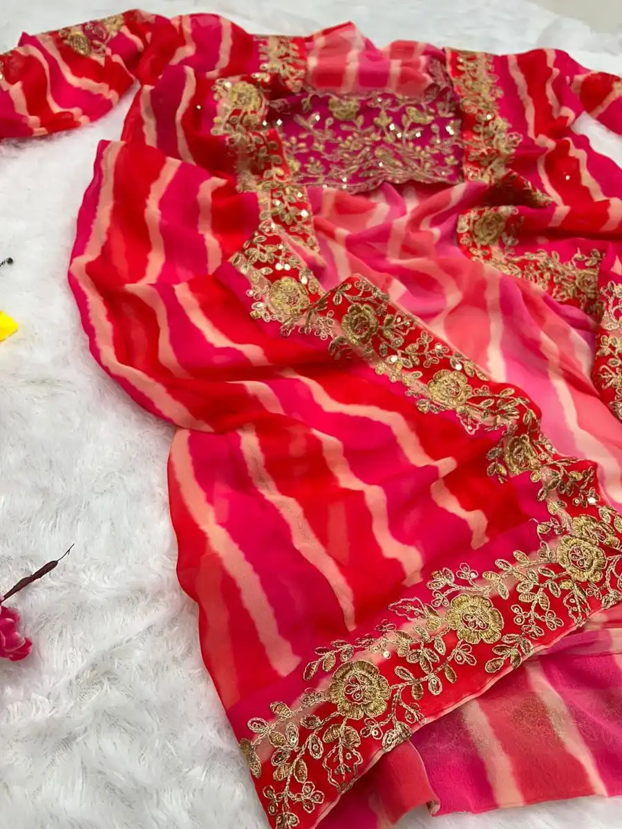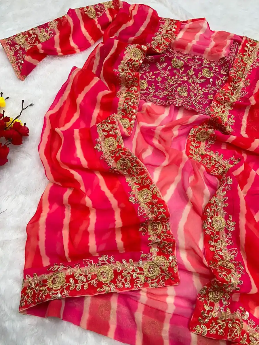 BLOUSE :- GEORGETTE EMBROIDERY SEQUENCE WORK AND BANDHNI PRINT STICHED