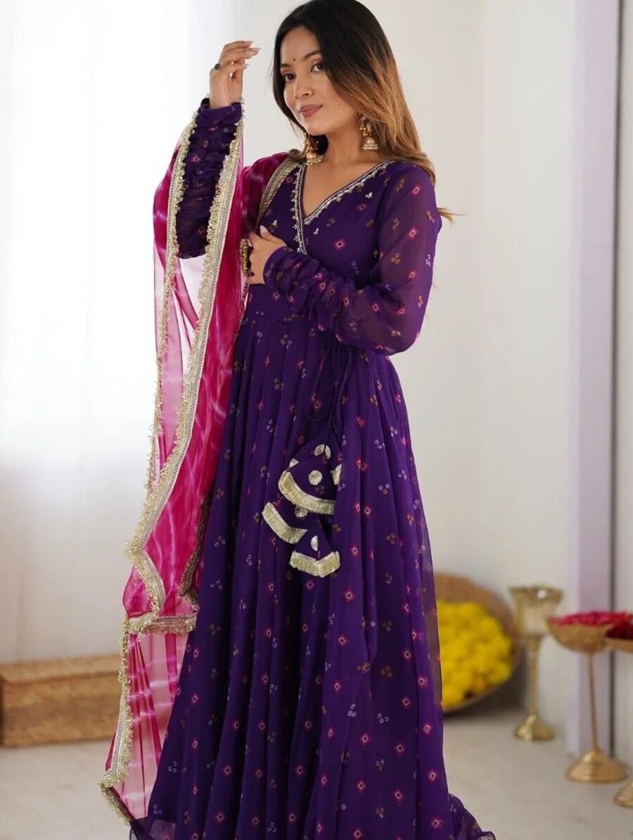 FANCY GEORGETTE PRINT WITH EMBROIDERY WORK ANARKALI GOWN BOTTOM WITH DUPATTA PURPLE