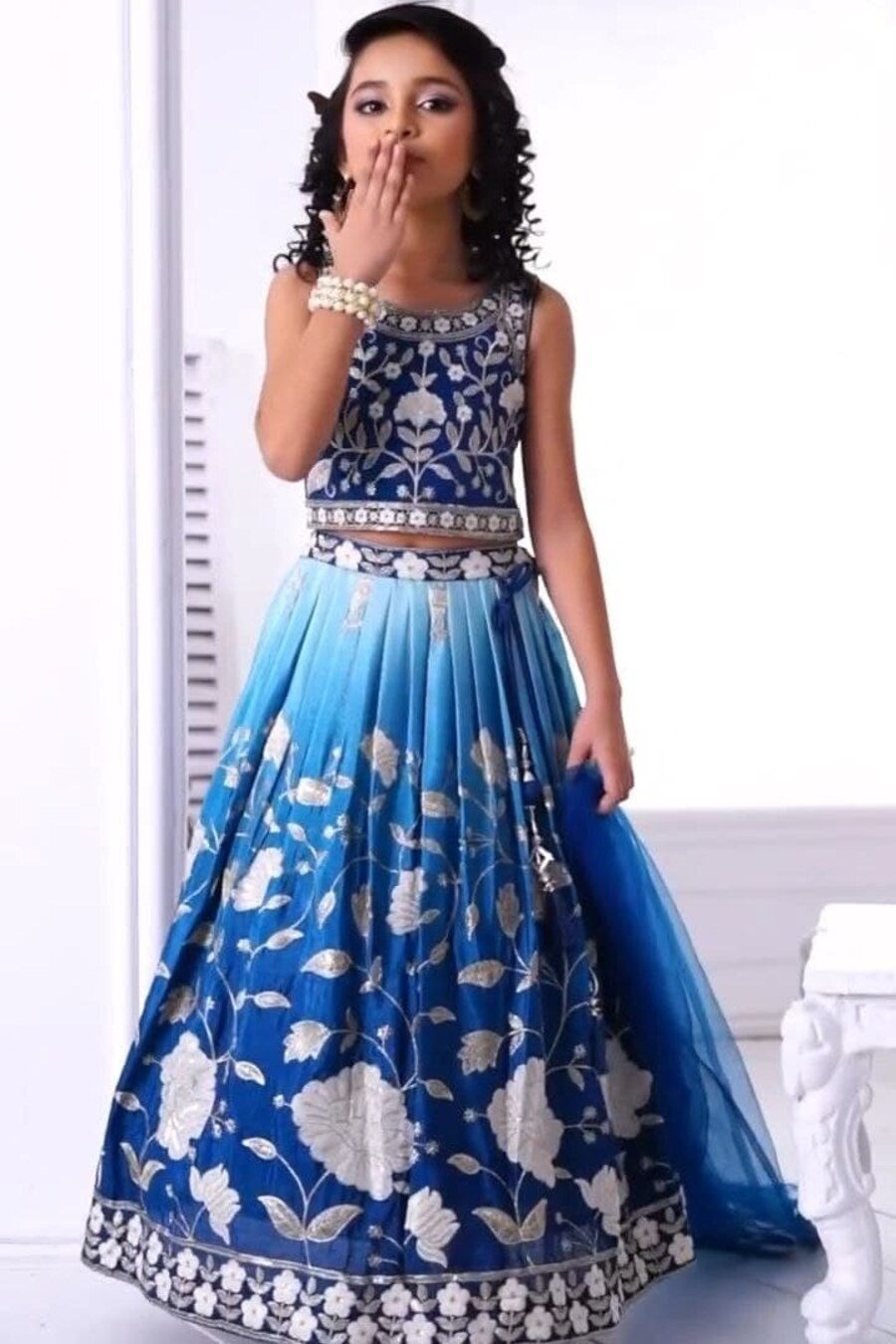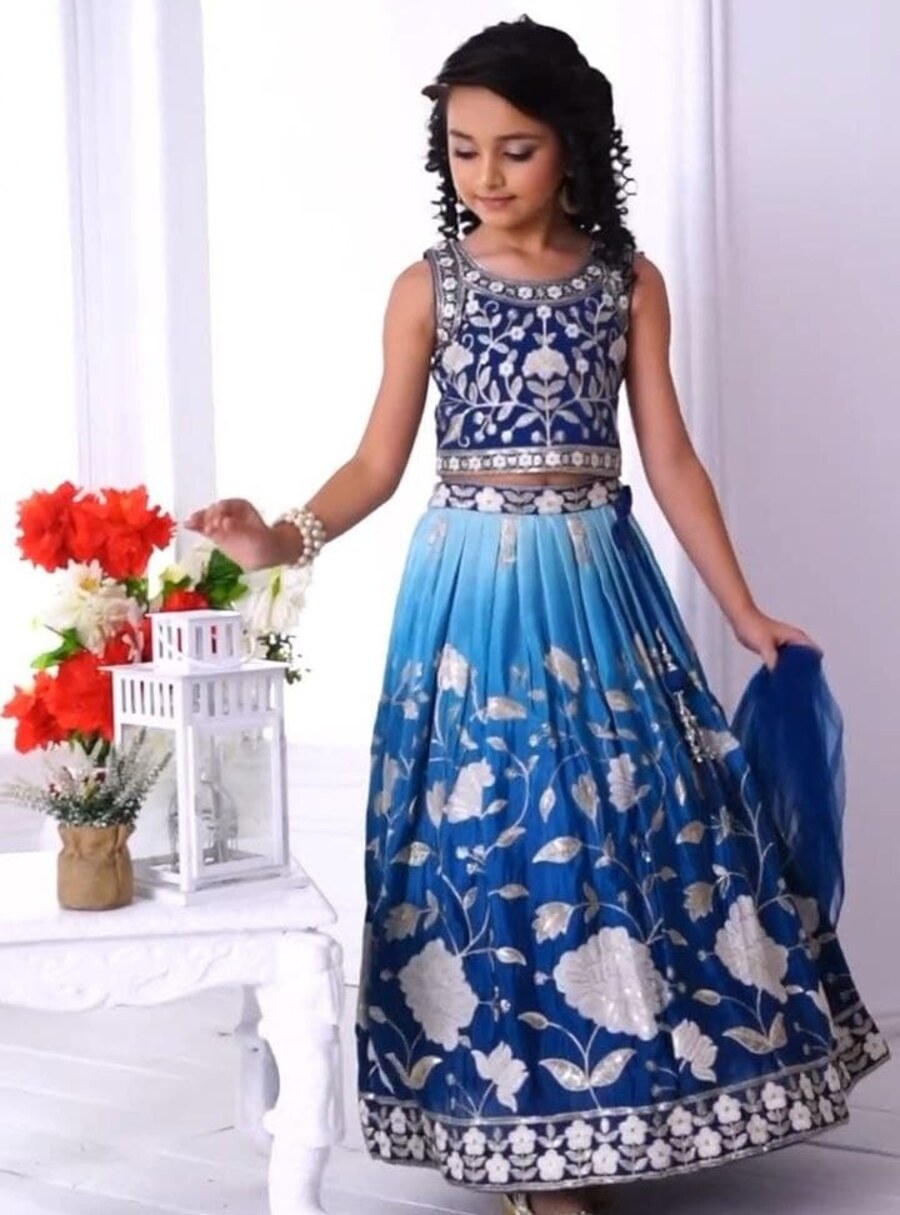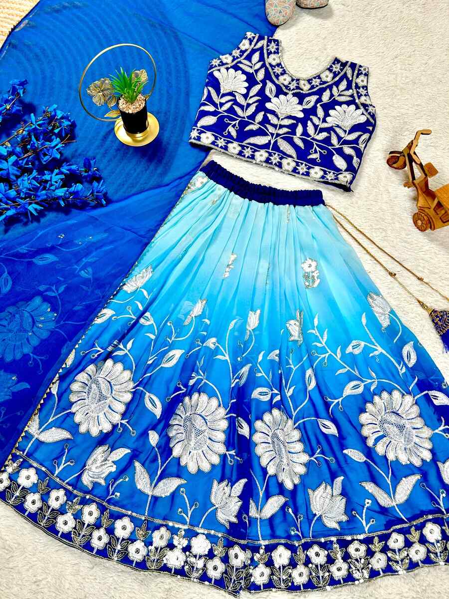 FANCY GEORGETTE PRINTED WITH EMBROIDERY SEQUENCE WORK KID’S LEHENGA CHOLI WITH DUPATTA BLUE