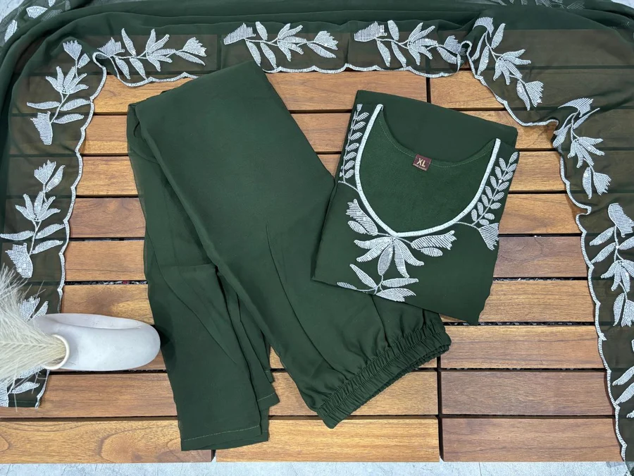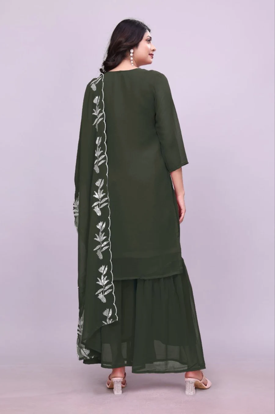 FANCY GEORGETTE SEQUENCE EMBROIDERY WORK TOP SHARARA WITH DUPATTA MEHNDI