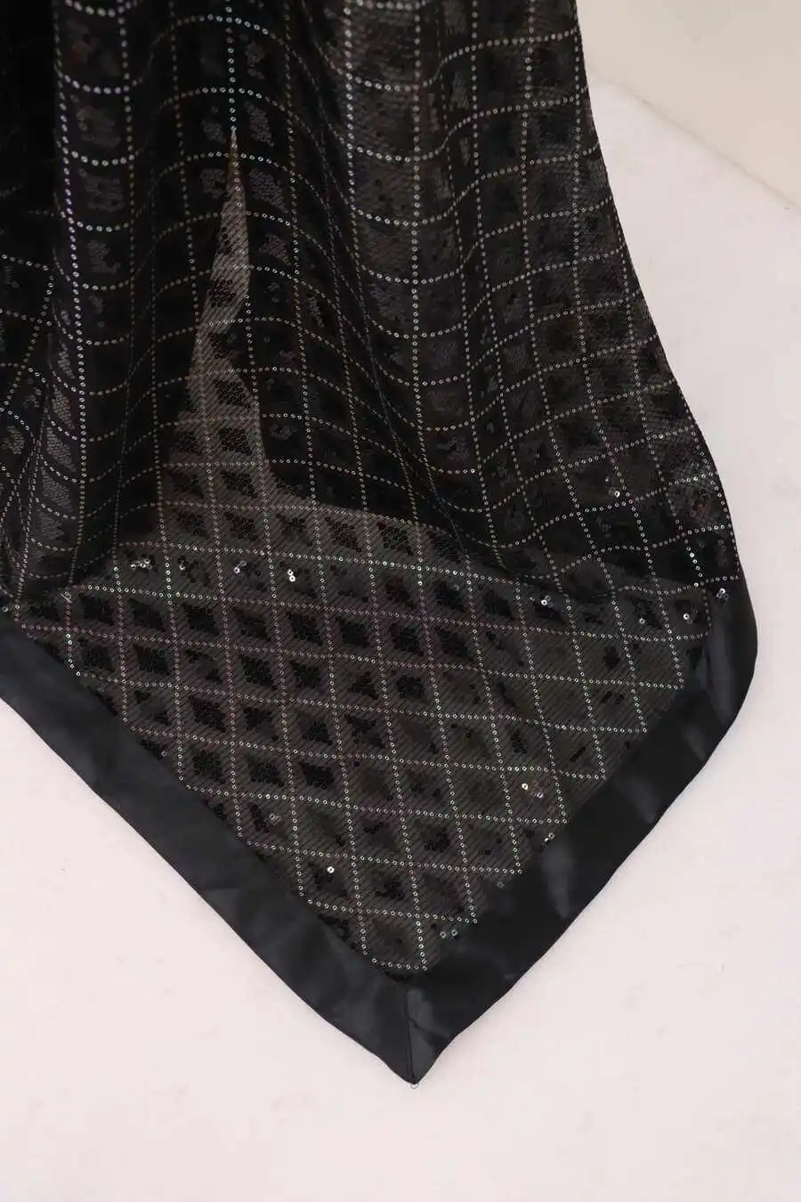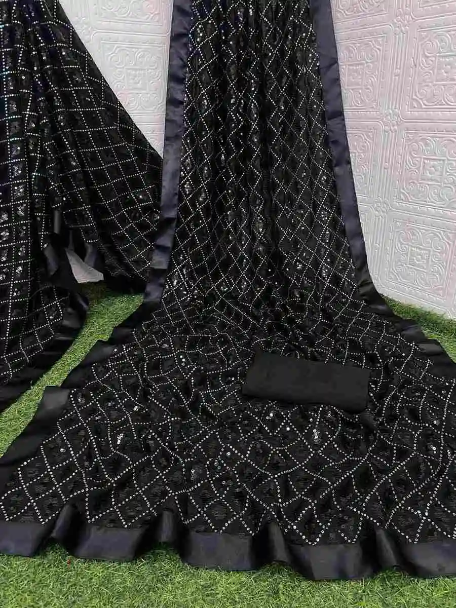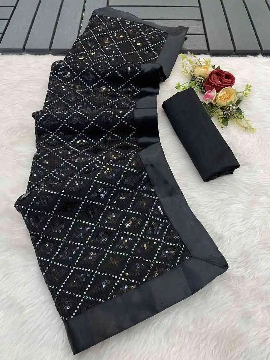 FANCY GEORGETTE SEQUENCE WITH THREAD & SATIN BORDER WORK SAREE WITH UNSTITCHED BLOUSE BLACK