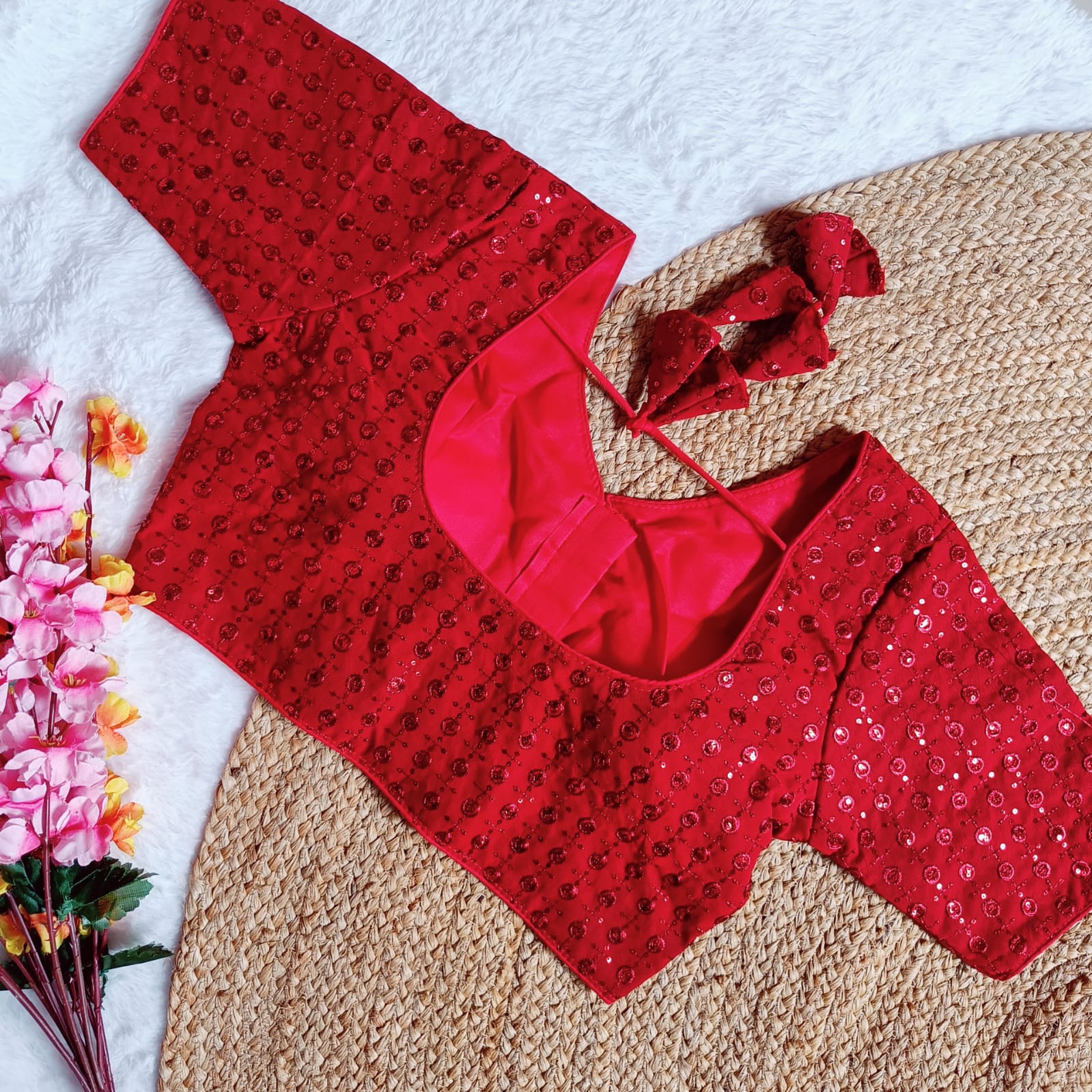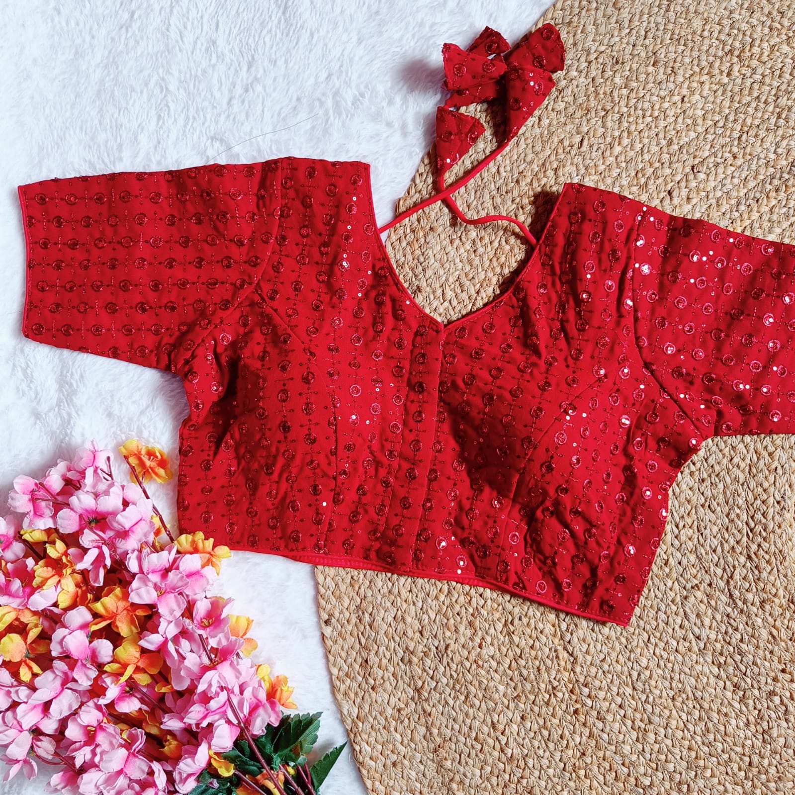 FANCY GEORGETTE SEQUENCE WORK STITCHED BLOUSE RED