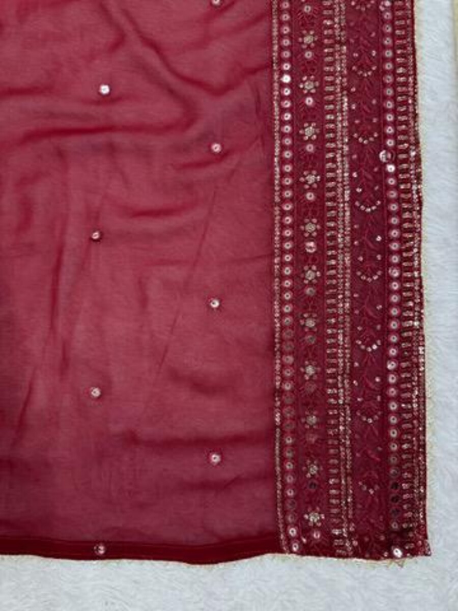 FANCY GEORGETTE THREAD WITH SEQUENCE WORK TOP BOTTOM WITH DUPATTA MAROON