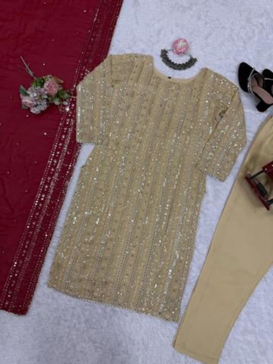 DUPATTA :- HEAVY GEORGETTE WITH SEQUENCES EMBROIDERY WORK AND 4 SIDE LACE