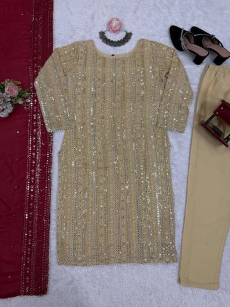 TOP :-HEAVY GEORGETTE WITH SEQUENCE EMBROIDERY WORK
